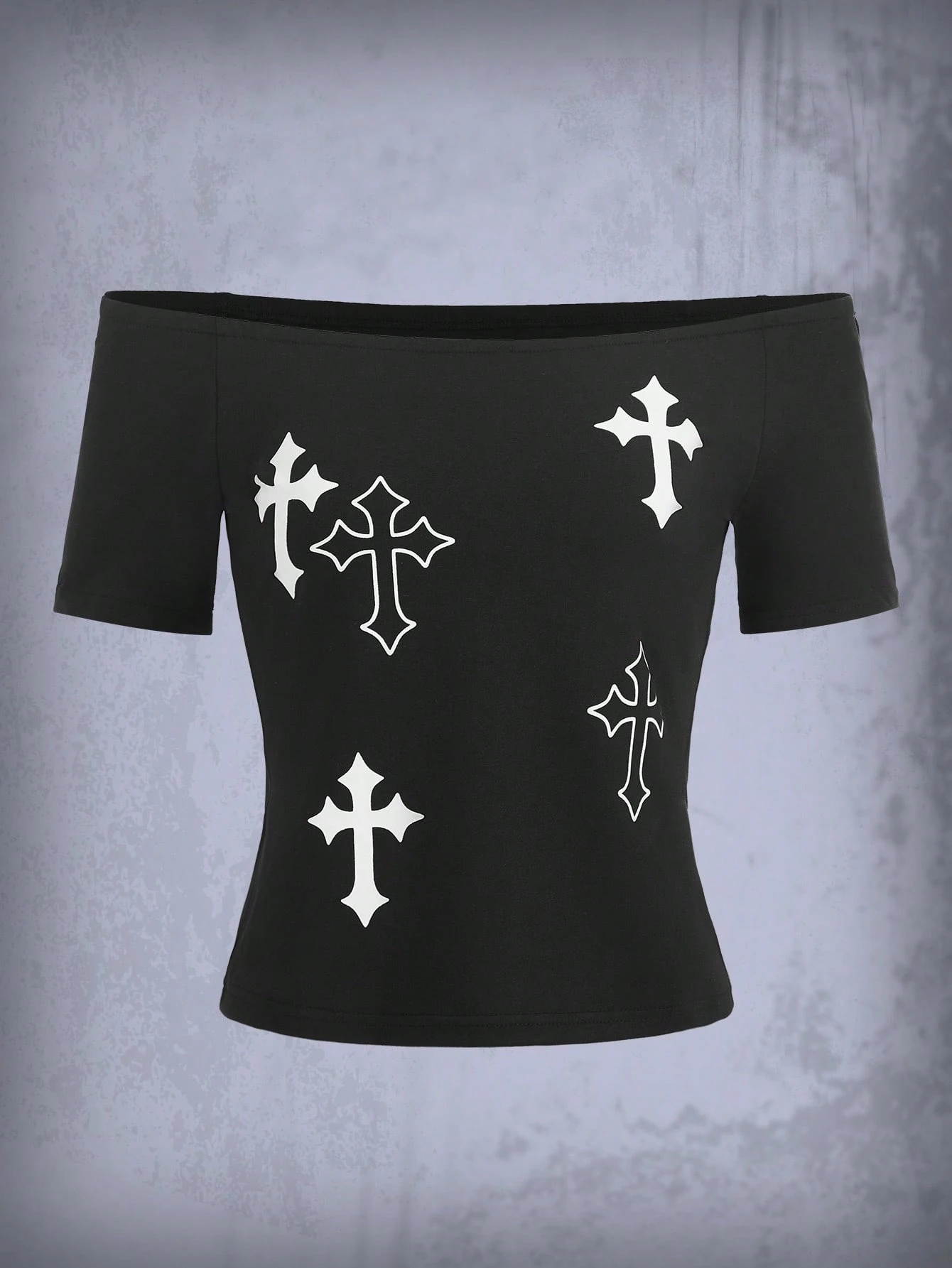 Grunge Punk T-shirt Croisé Imprimé Col Bardot