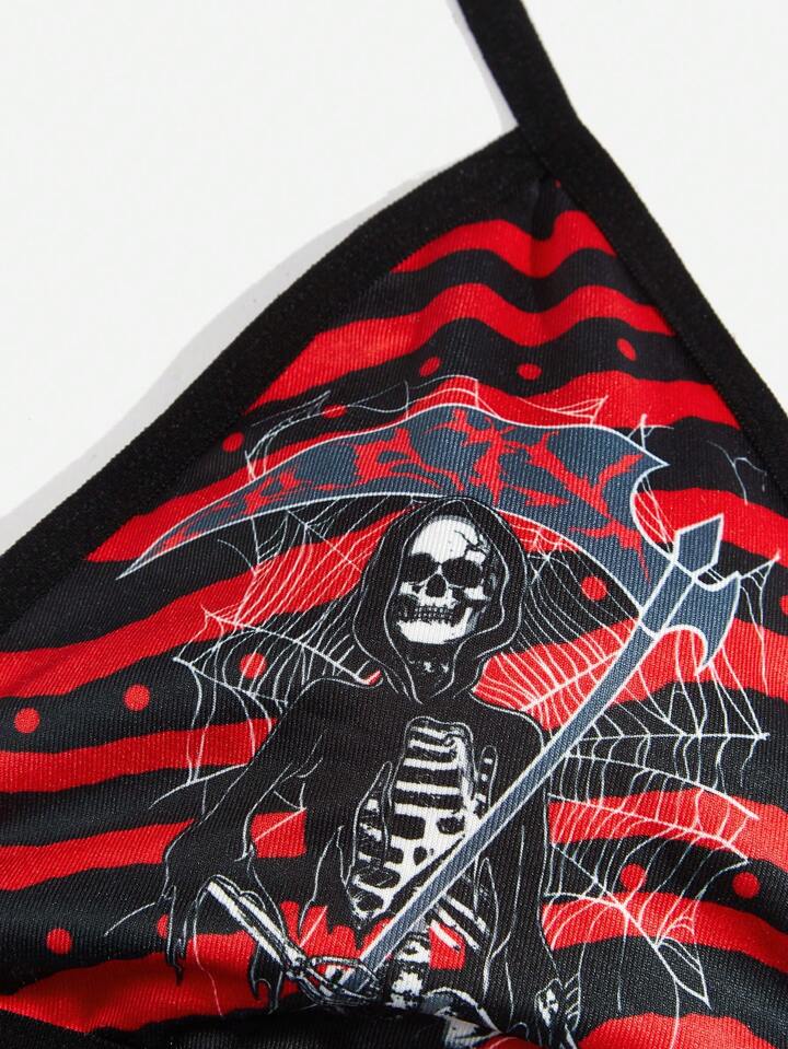 Grunge Punk Ensemble De Lingerie Croisé & Imprimé Squelette