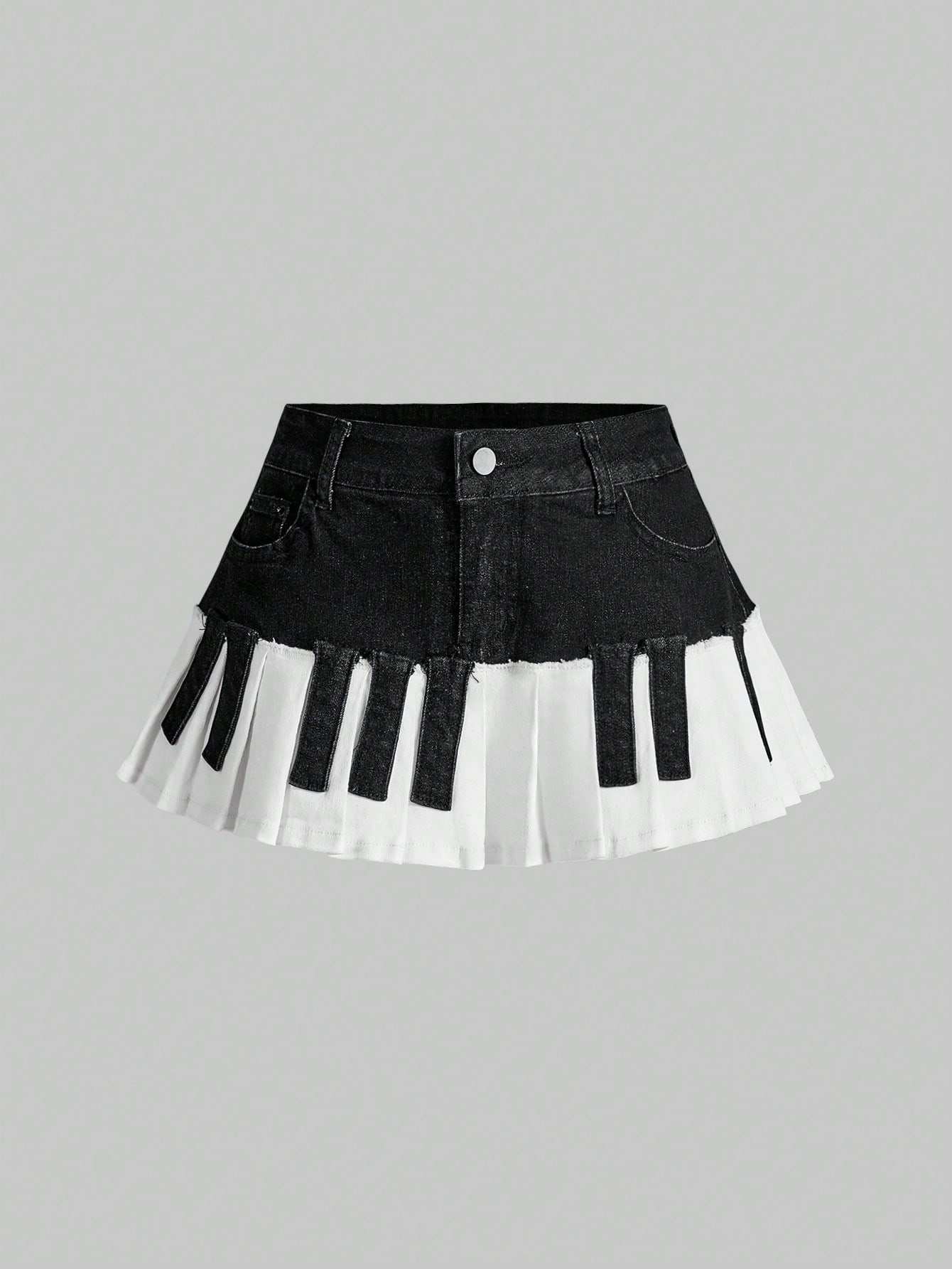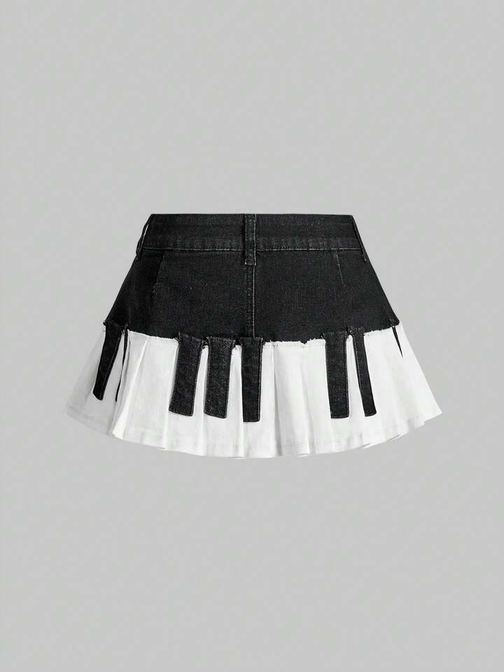 Grunge Punk Jolie mini-jupe plissée en jean à motif de touches de piano