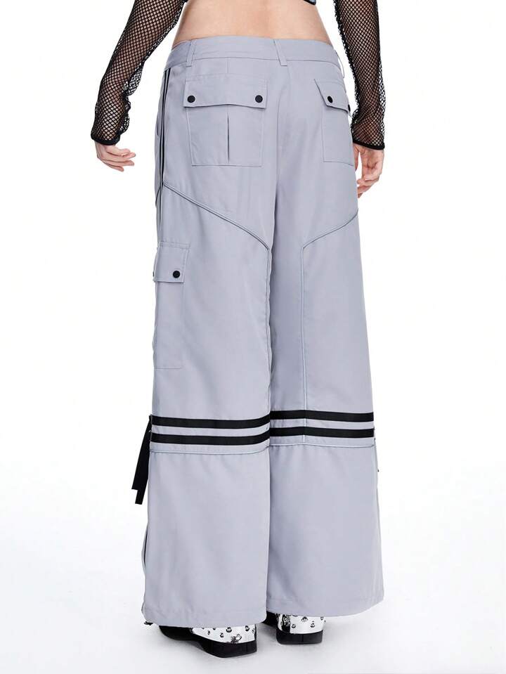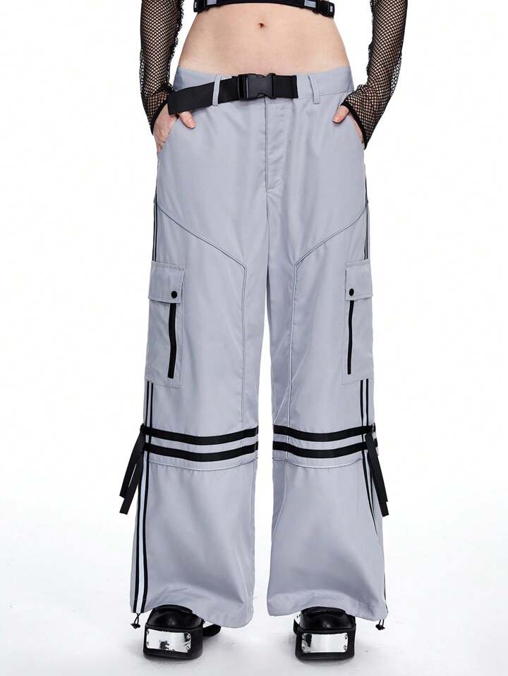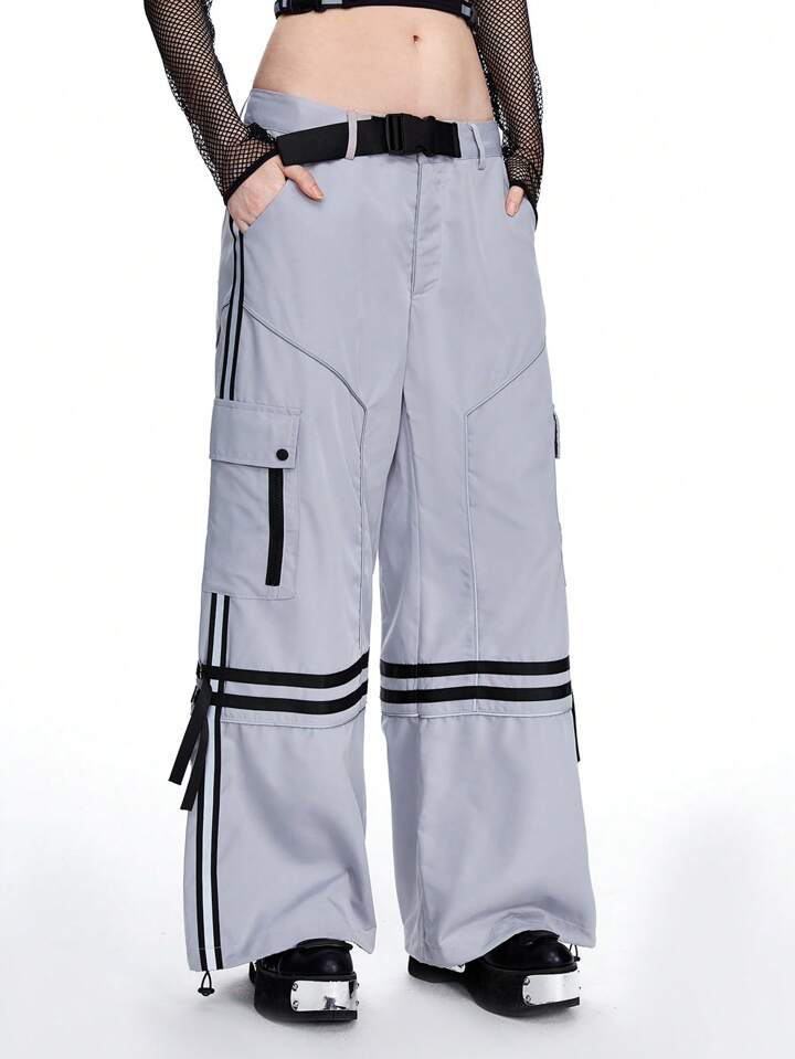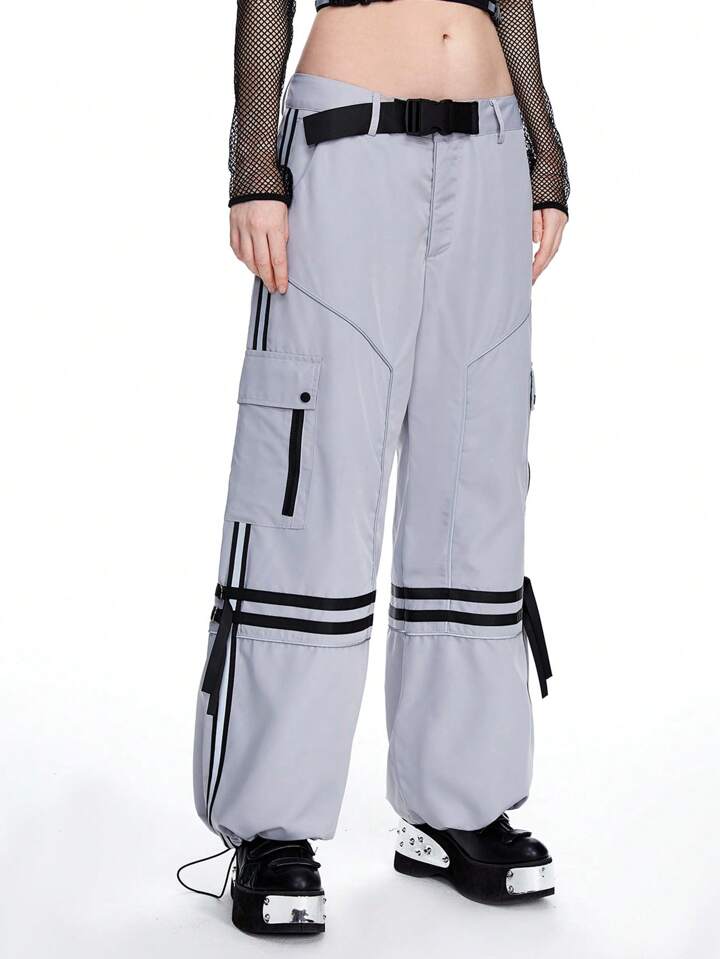 Grunge Punk Pantalon cargo ample au style cyberpunk avec ourlet réglable et bandes réfléchissantes