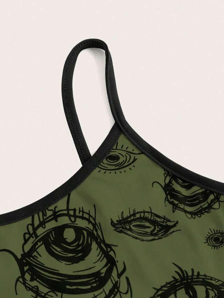 Grunge Punk Top À Fines Brides Imprimés Yeux À Liseré Contrastant