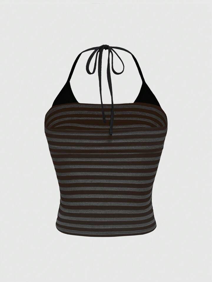 Grunge Punk Top style débardeur fashion et sexy à col ras-du-cou, rayé et bicolore, pour femmes