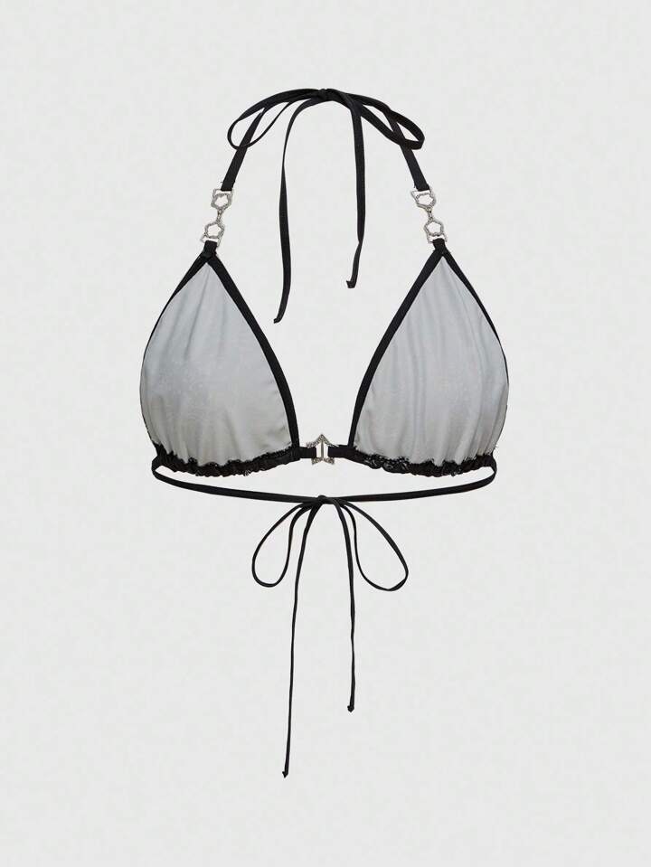 Grunge Punk Brassière triangle avec décoration métallique croix gothique et aile d'hirondelle