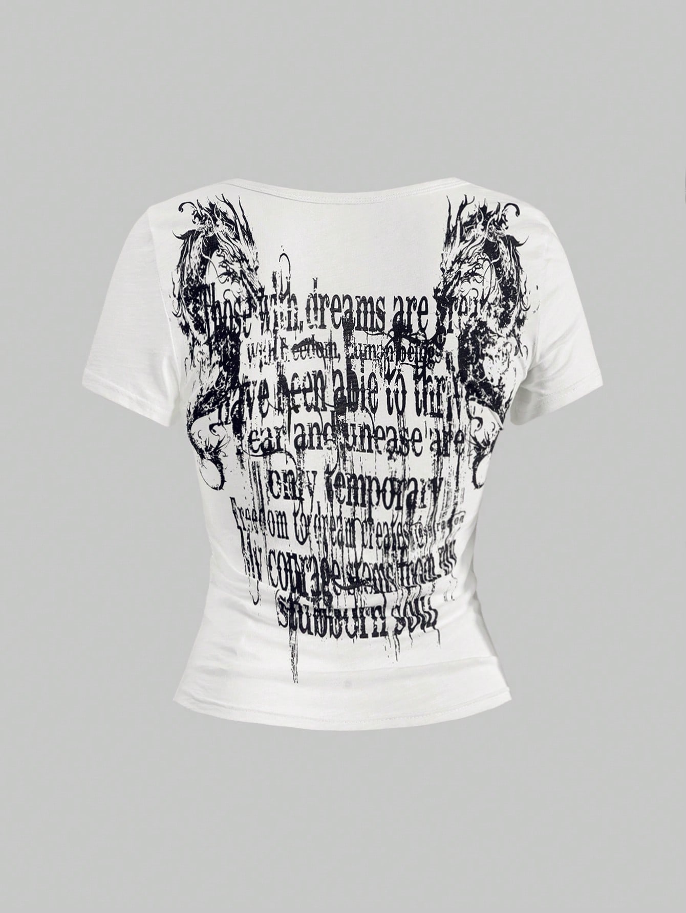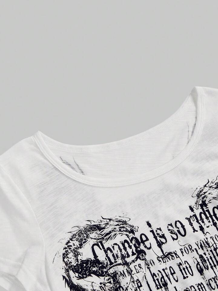 Grunge Punk T-shirt imprimé tatouage esthétique grunge, style lettre 2000 trash, Top transparent blanc japonais Y2K, gothique vintage
