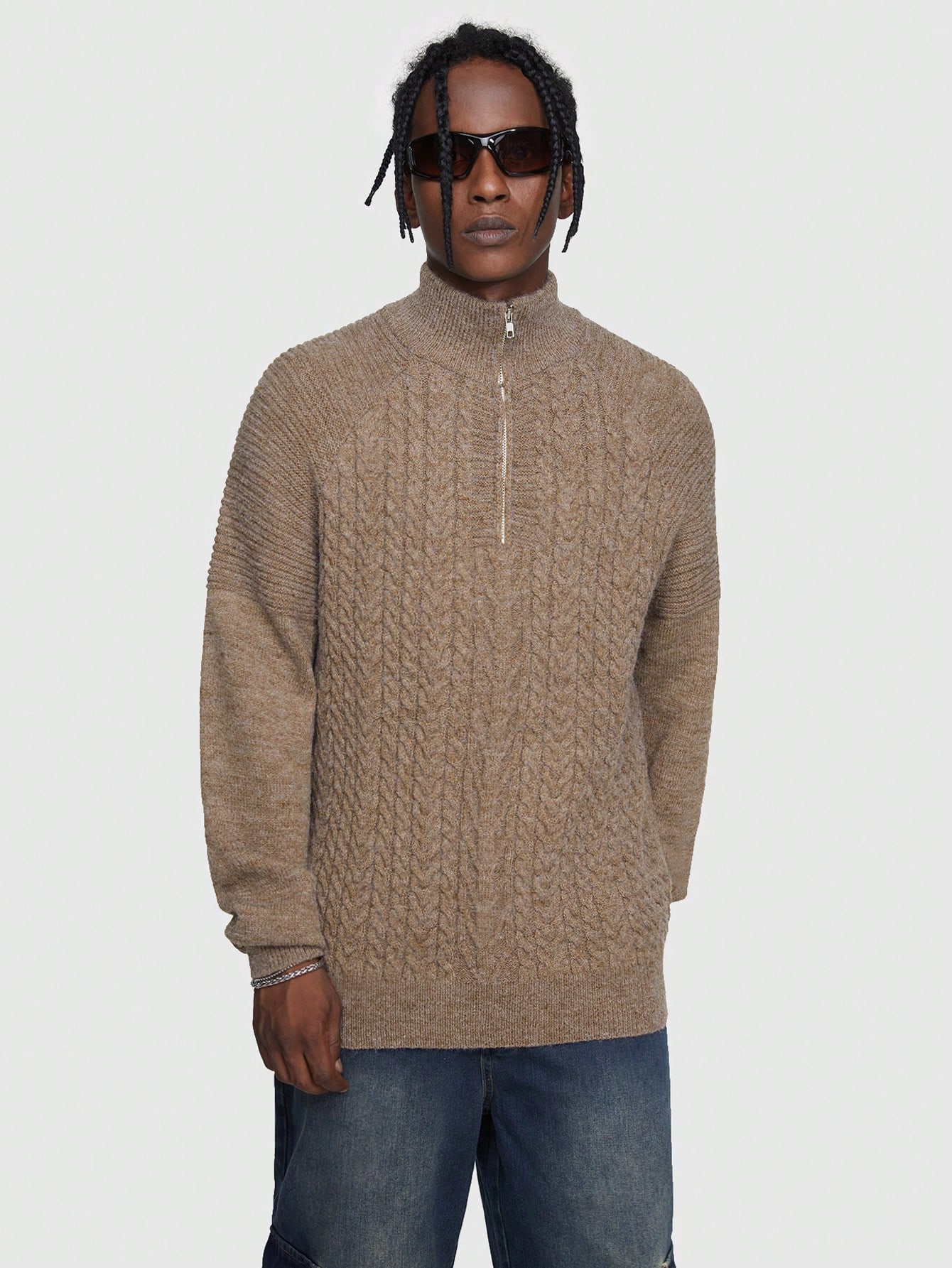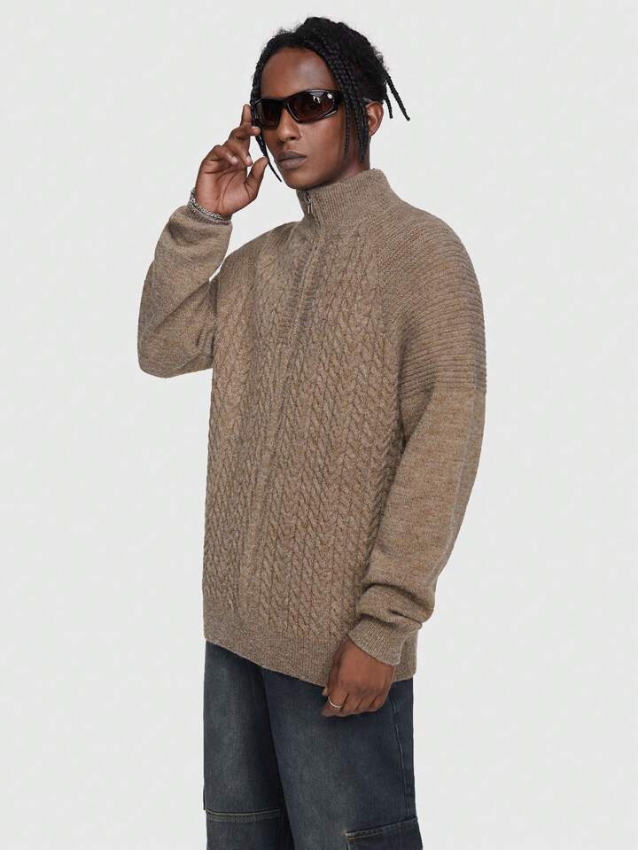 Grunge Punk Homme Pull Zippé En Tricot Torsadé Épaule tombante