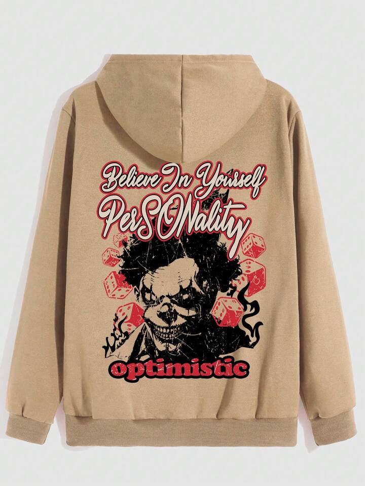 Grunge Punk Homme Sweat-Shirt À Capuche Lettre Et Figure À Cordon À Doublure Thermique