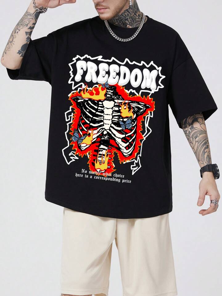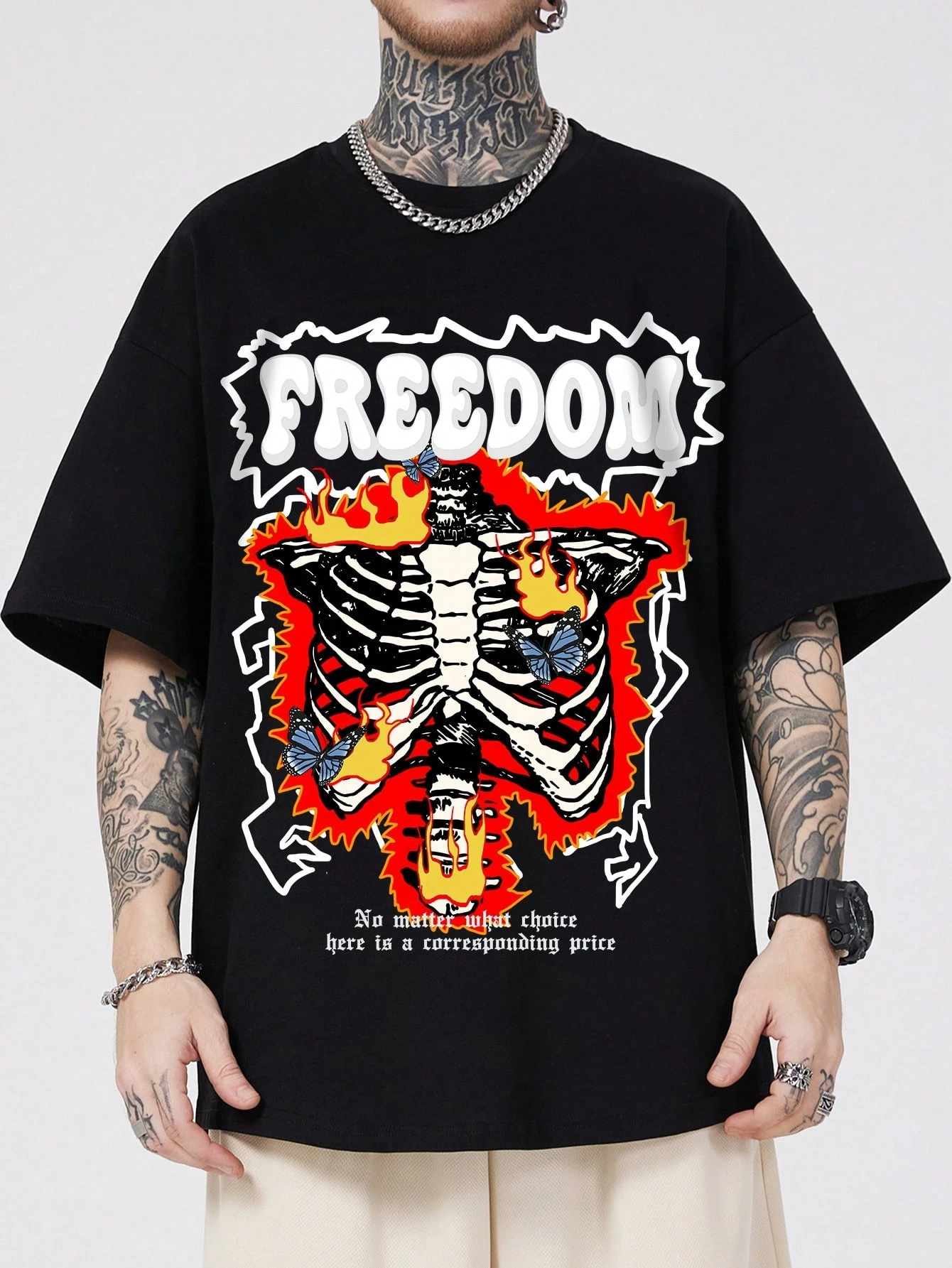 Grunge Punk Homme T-shirt squelette & graphique de slogan