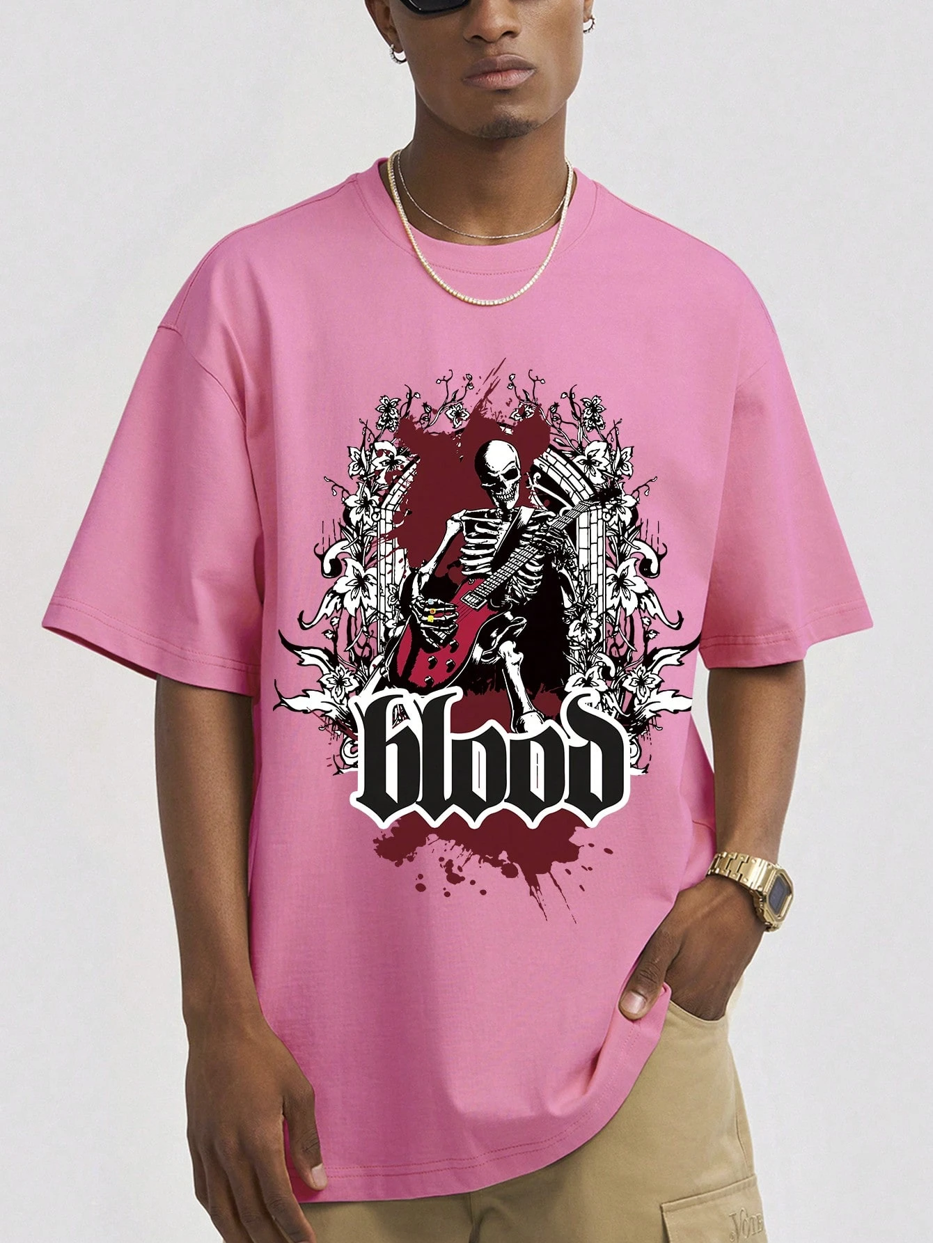 Grunge Punk Homme T-shirt Motif Tête De Mort Et Lettre