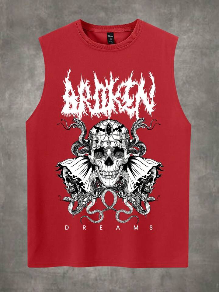 Grunge Punk Homme Top Sans Manches Imprimé Tête De Mort