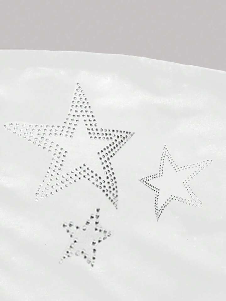 Grunge Punk Top tube blanc sans bretelles avec imprimé étoile et décoration de strass pour femmes