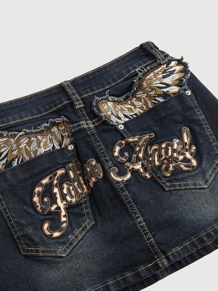 Grunge Punk Mini-jupe en jean délavé, déchirée, à taille basse, rétro, avec broderie léopard et couleurs contrastées pour les femmes. Style Gyaru, pour l'été, les festivals, les concerts