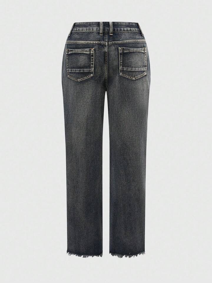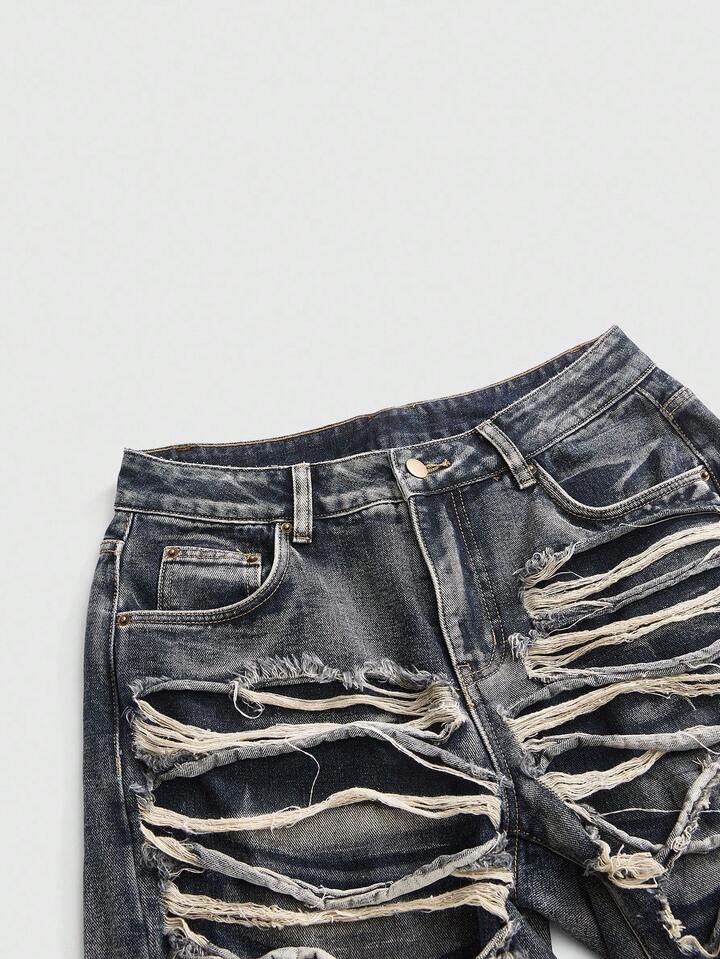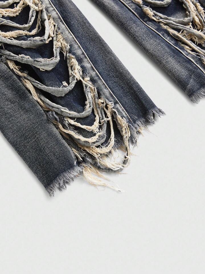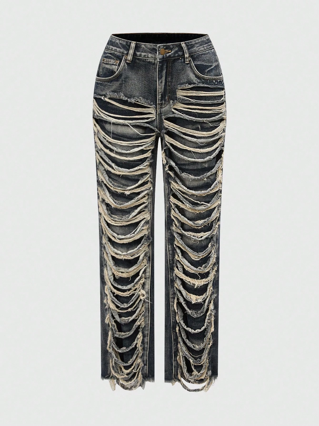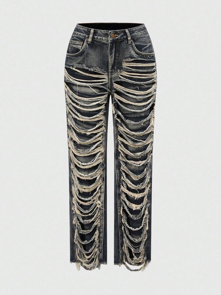 Grunge Punk Jeans femme à jambe évasée, taille basse, design asymétrique déchiré, style punk rock et pour Halloween