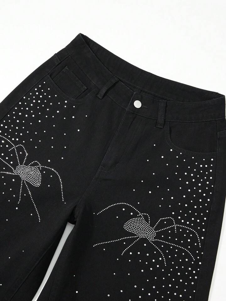Grunge Punk Jeans à jambes larges et coupe ample, fortement ornés de strass. Design de niche pour femmes