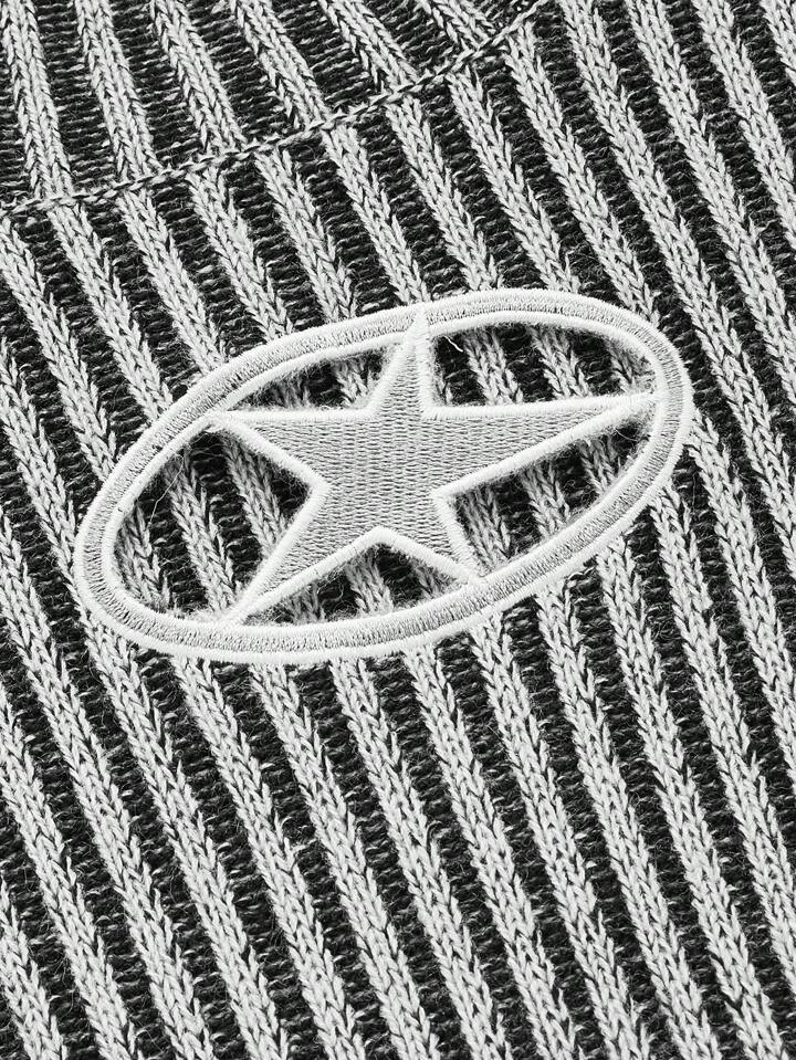 Grunge Punk Top À Manches Courtes En Tricot Avec Motif Étoile Et Col Droit