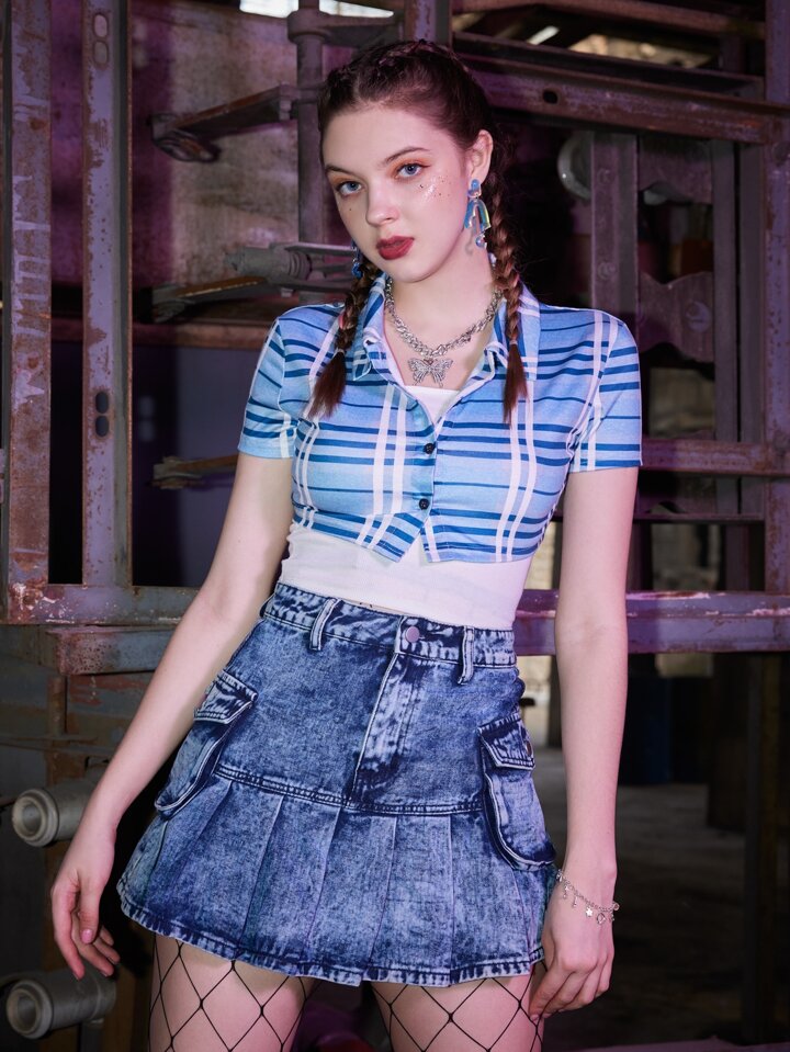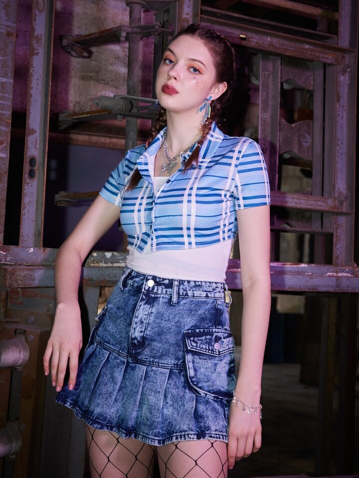 Grunge Punk 1 pièce T-shirt court à carreaux à bouton