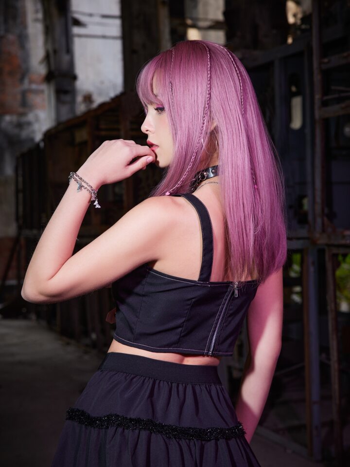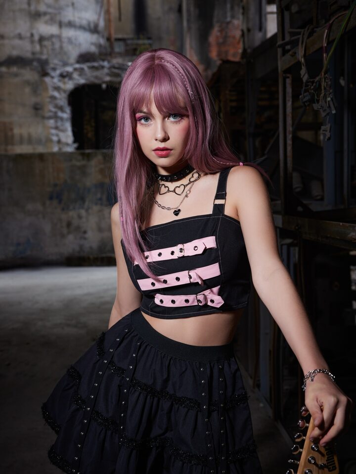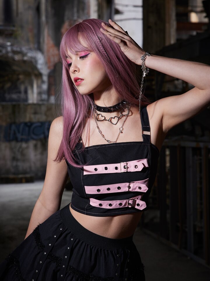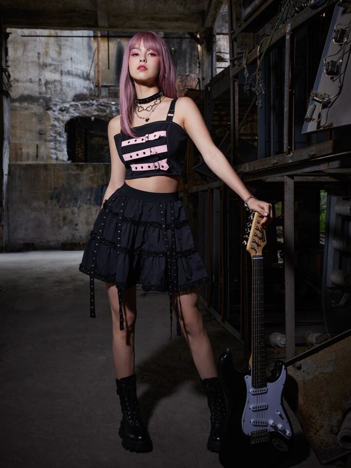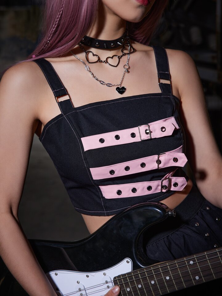 Grunge Punk Top à fines brides court à œillets zippé