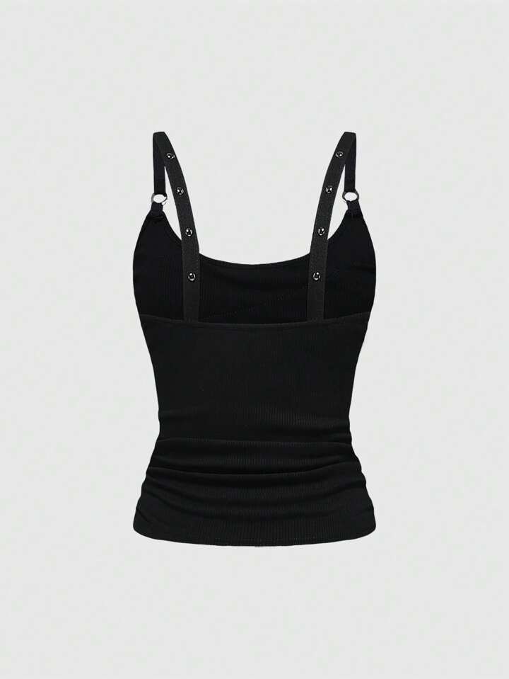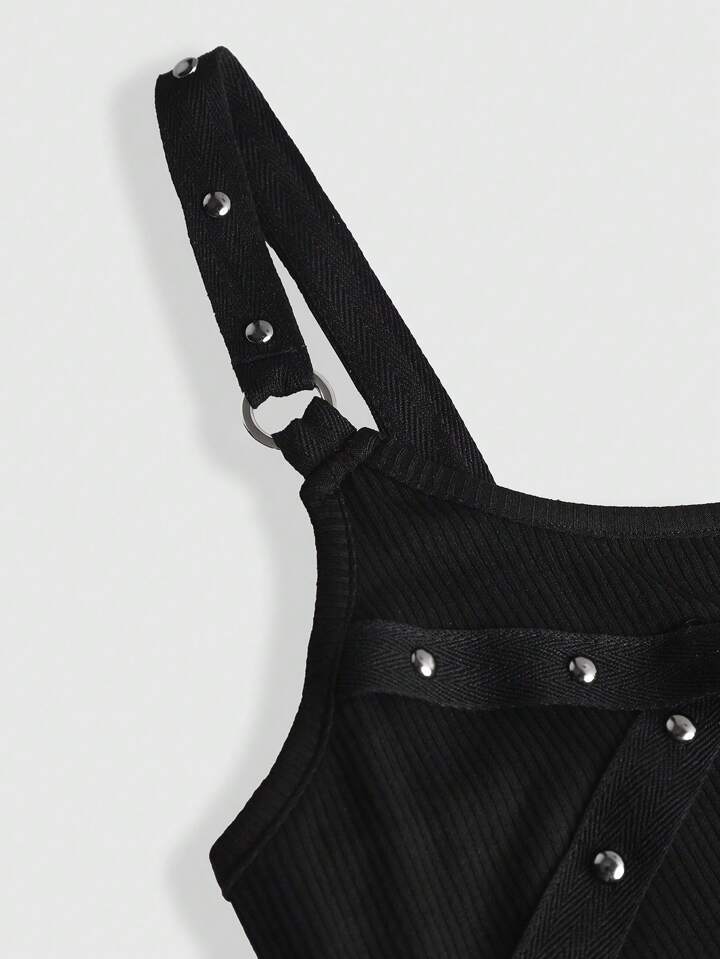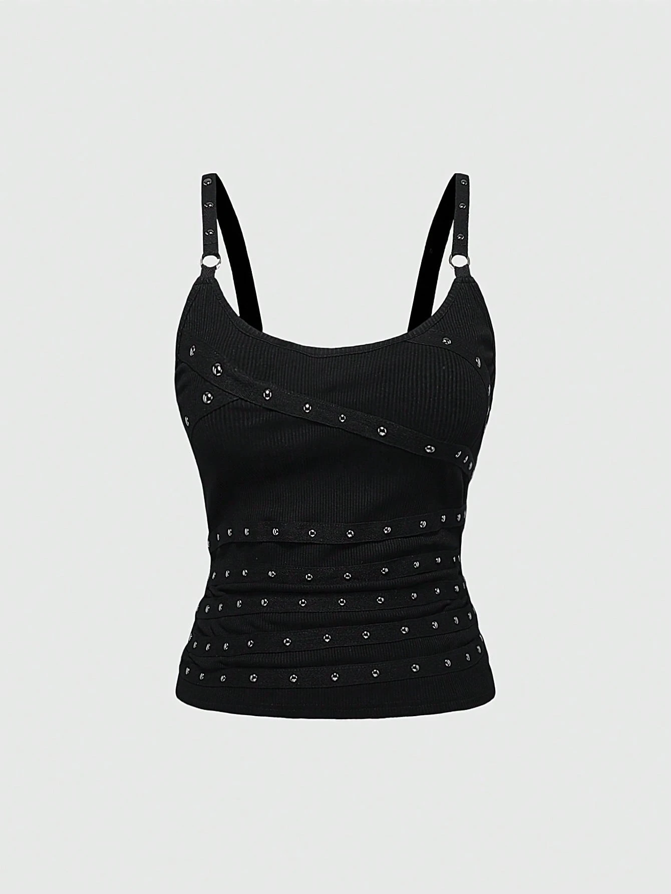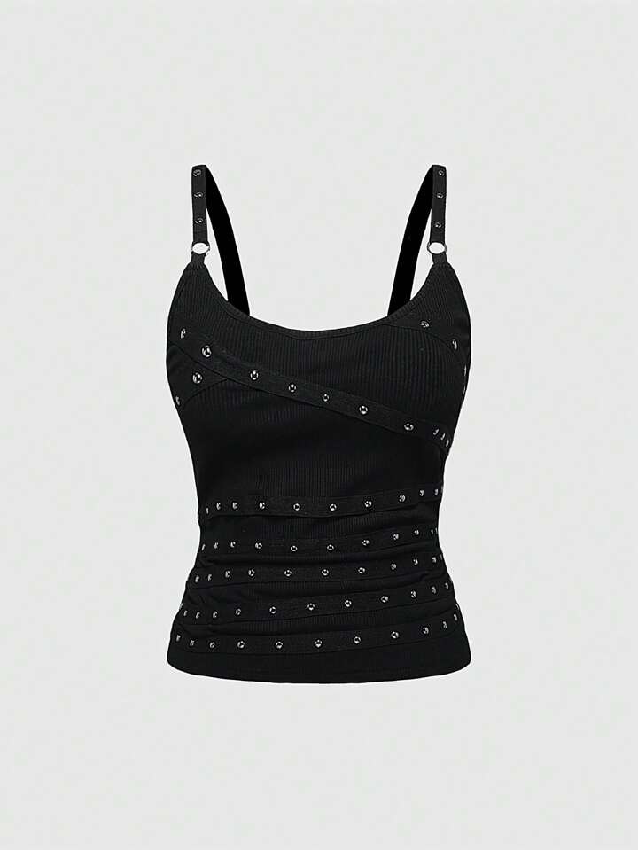Grunge Punk Débardeur noir sexy à fines bretelles, avec perles et strass, style Kpop. Convient pour l'été, la plage, la remise des diplômes, Pâques, les festivals de musique, les vacances