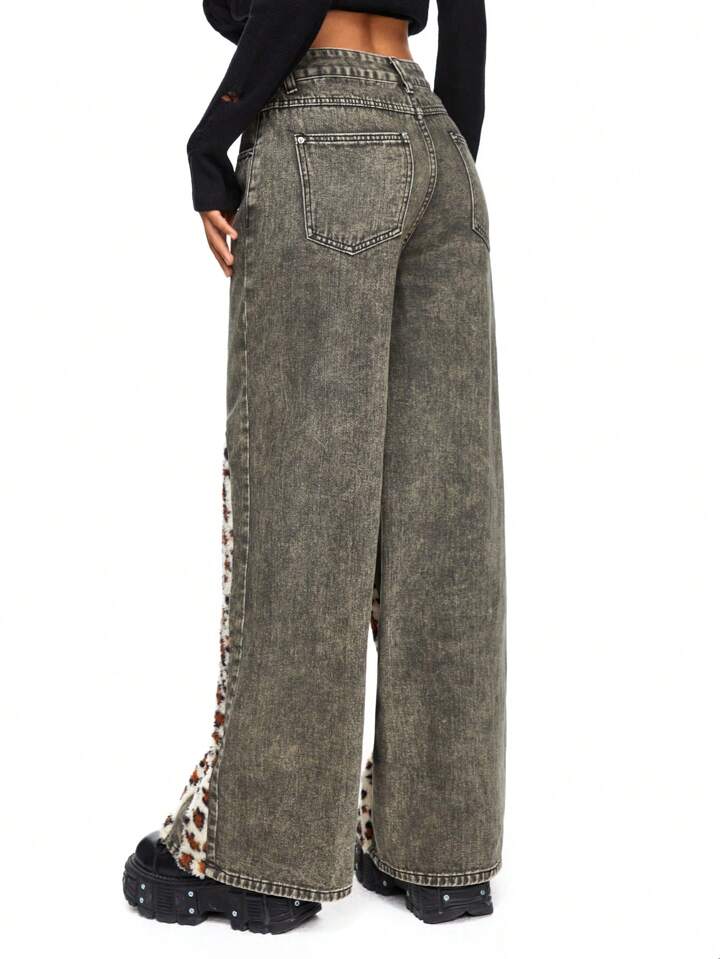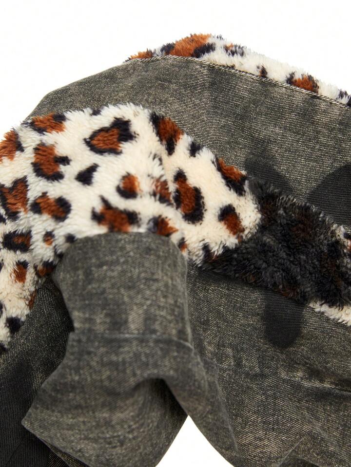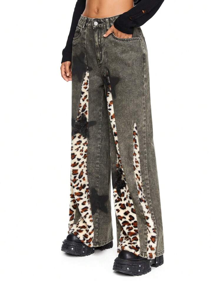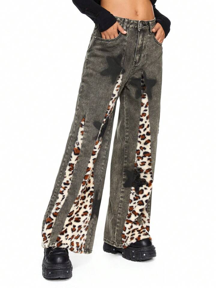 Grunge Punk Jeans décontracté polyvalent avec poche patch imprimé léopard