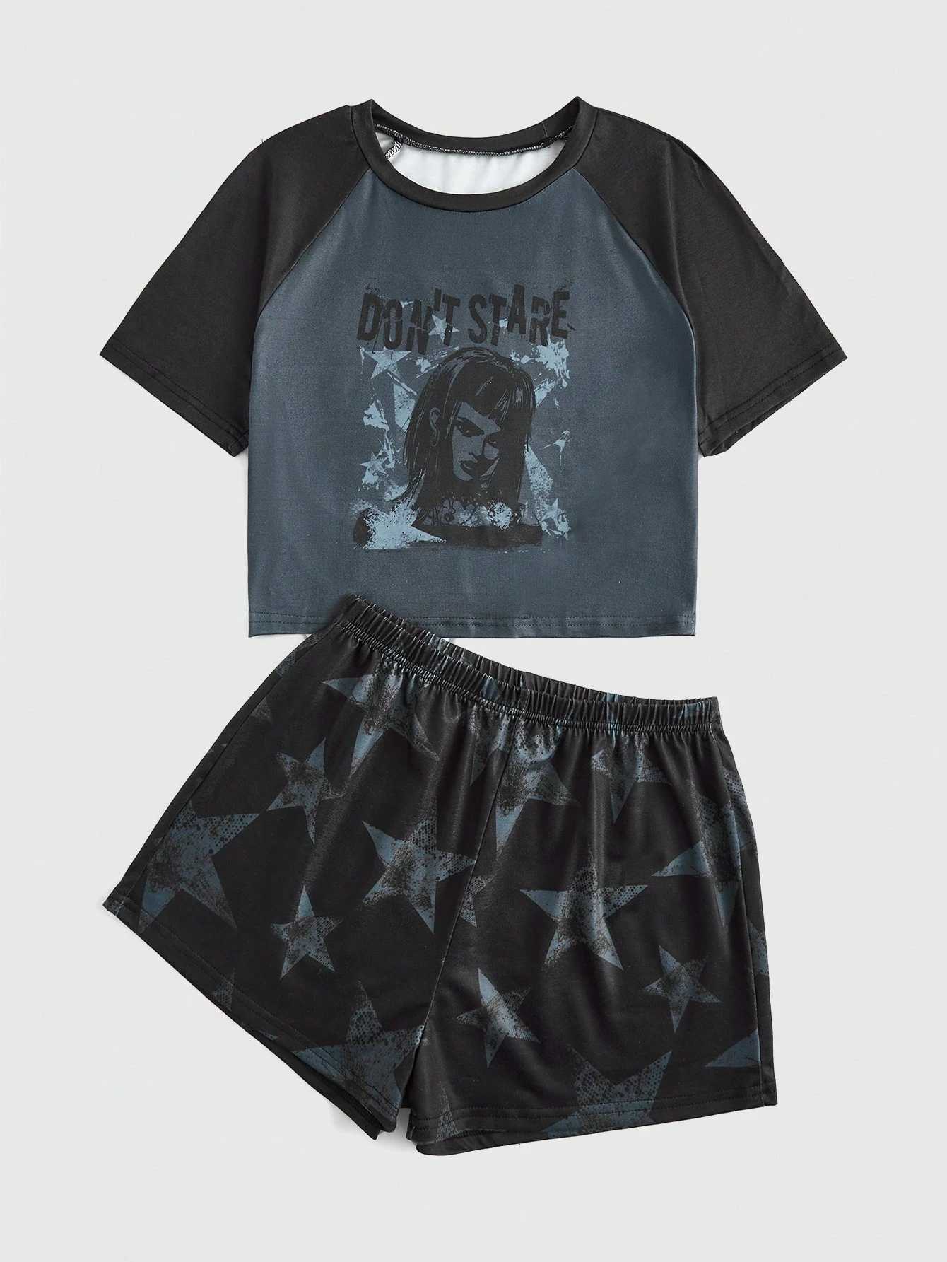 Grunge Punk Ensemble De Pyjama Lettre Figure Manches Raglan