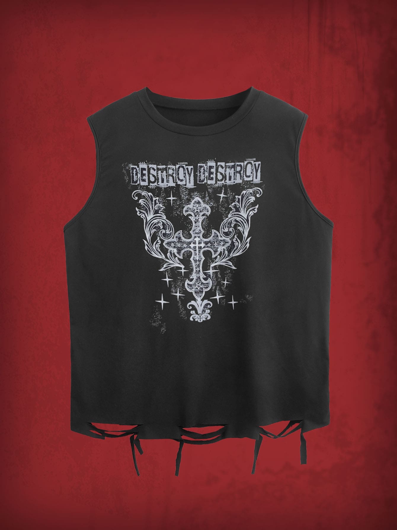 Grunge Punk Top Sans Manches À Lettres Déchiré