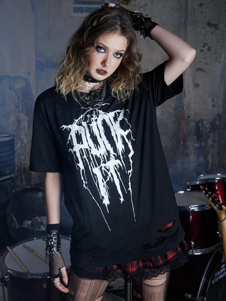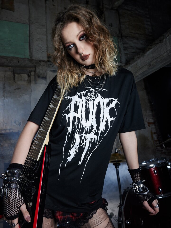 Grunge Punk T-shirts pour femmes Casual Lettres