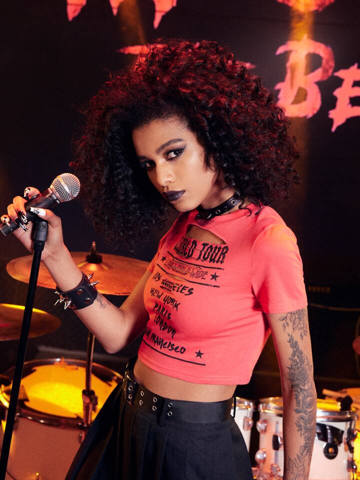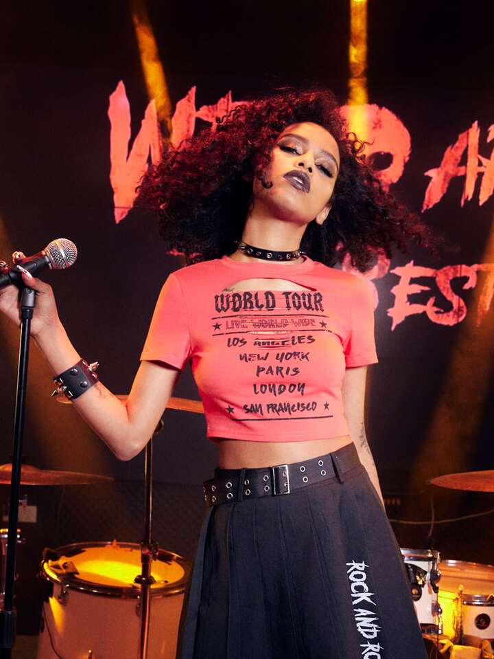 Grunge Punk T-shirt court déchiré à imprimé lettre