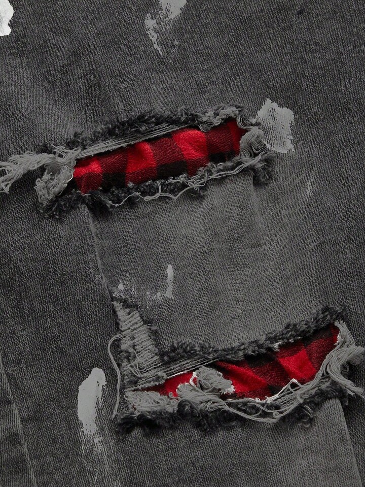 Grunge Punk Jeans déchirés à carreaux contrastés en coton pour hommes, école