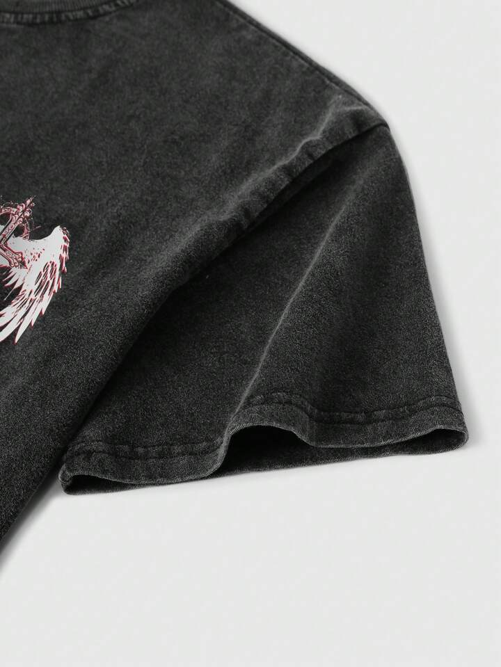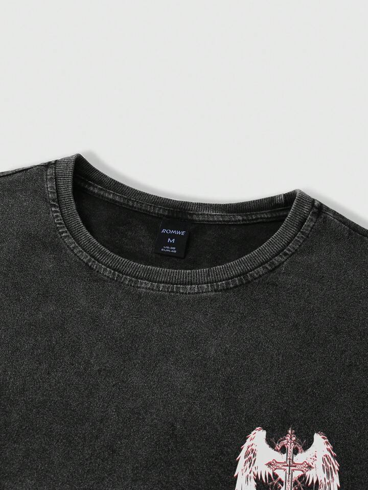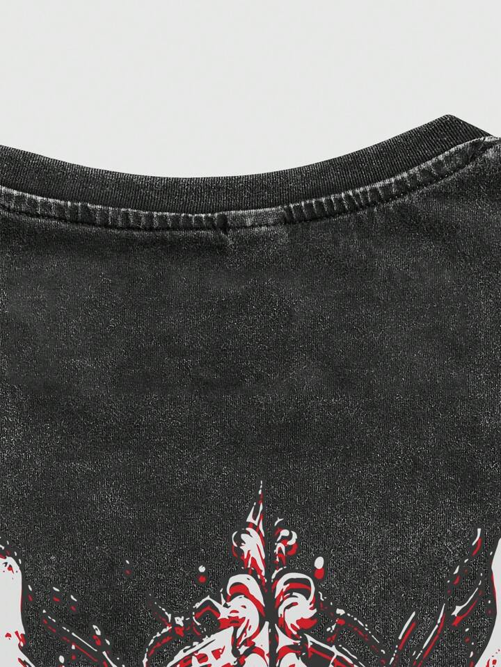 Grunge Punk T-shirt à col rond vintage usé et délavé pour homme, parfait pour un port casual au quotidien au printemps et en été, école