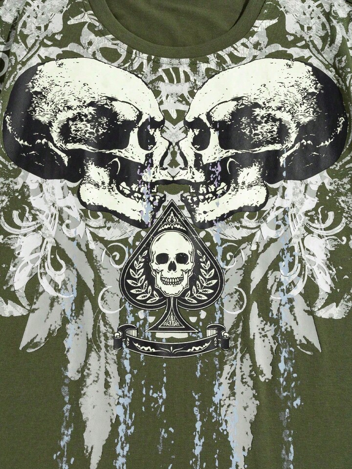 Grunge Punk T-shirt graphique à motif crâne et lettre pour homme, école