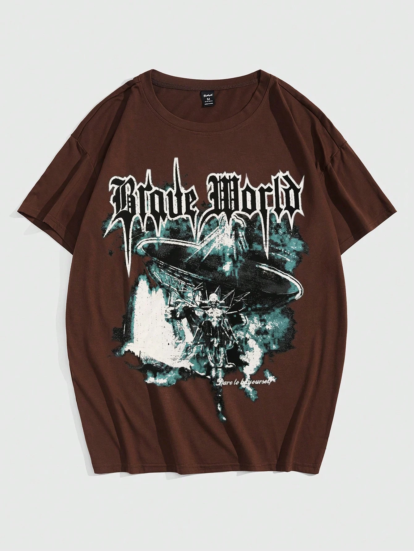 Grunge Punk T-shirt Encolure Ronde Oversize À Motif Imprimé Pour Hommes, Mode De Rue Pour Porter Quotidiennement Au Printemps Et En Été