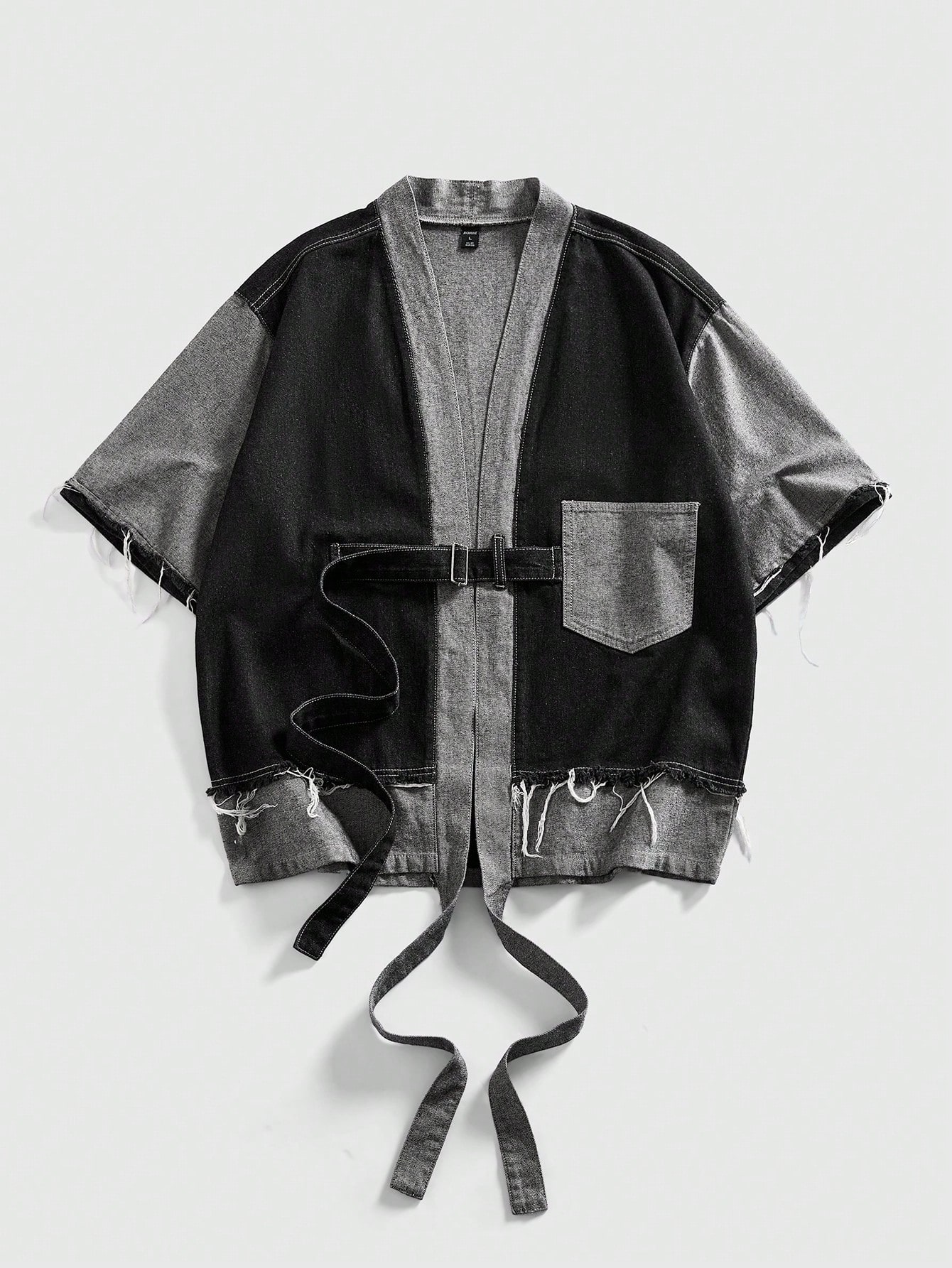Grunge Punk Top décontracté en denim à manches courtes, style patchwork, avec poches et boutons. Polyvalent pour les déplacements quotidiens