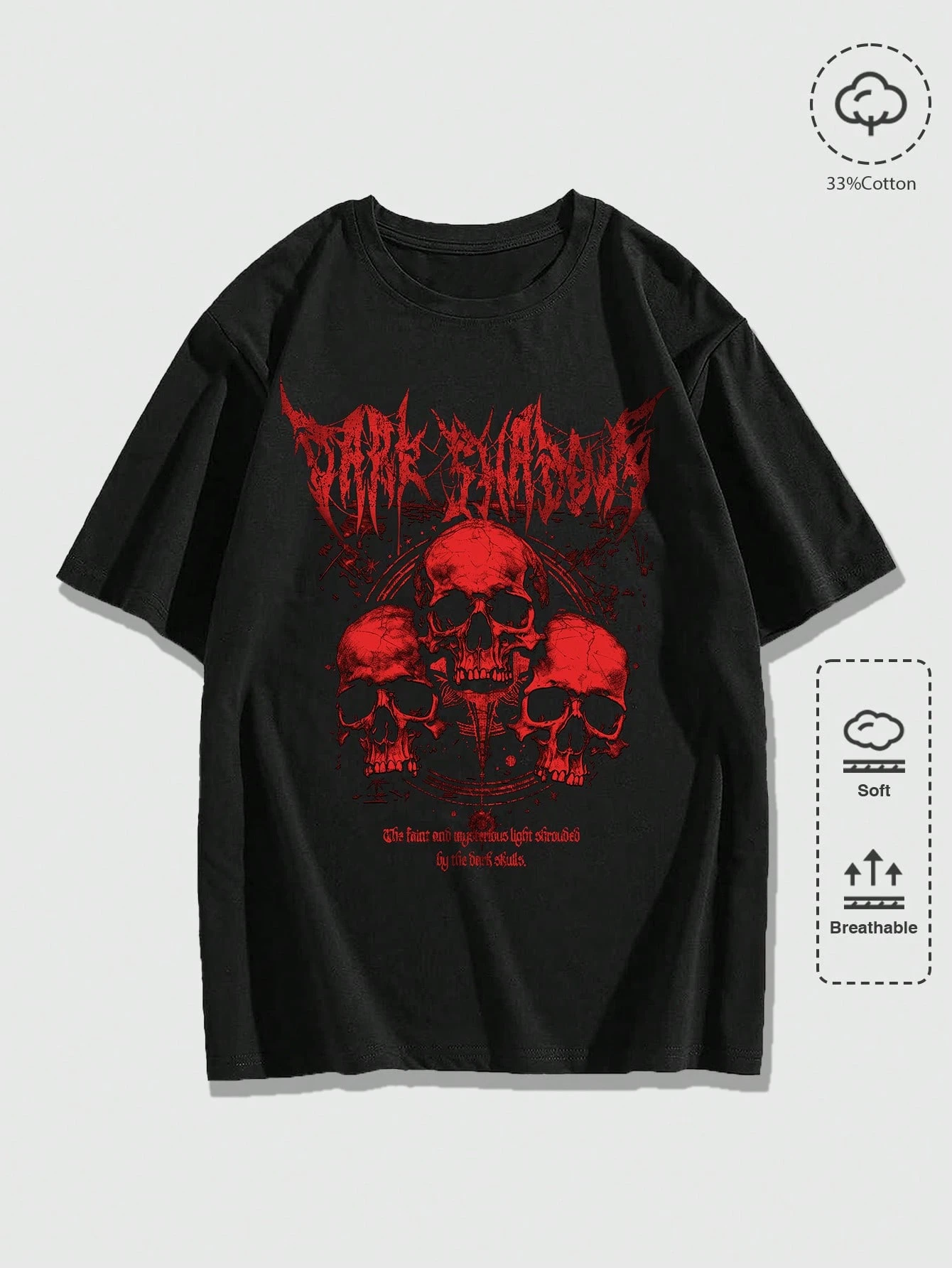 Grunge Punk T-shirt graphique à col ras-du-cou et manches courtes décontracté avec motif crâne, pour l'été