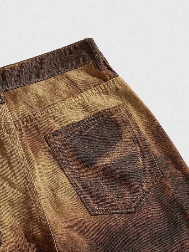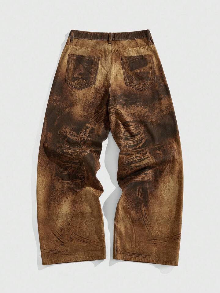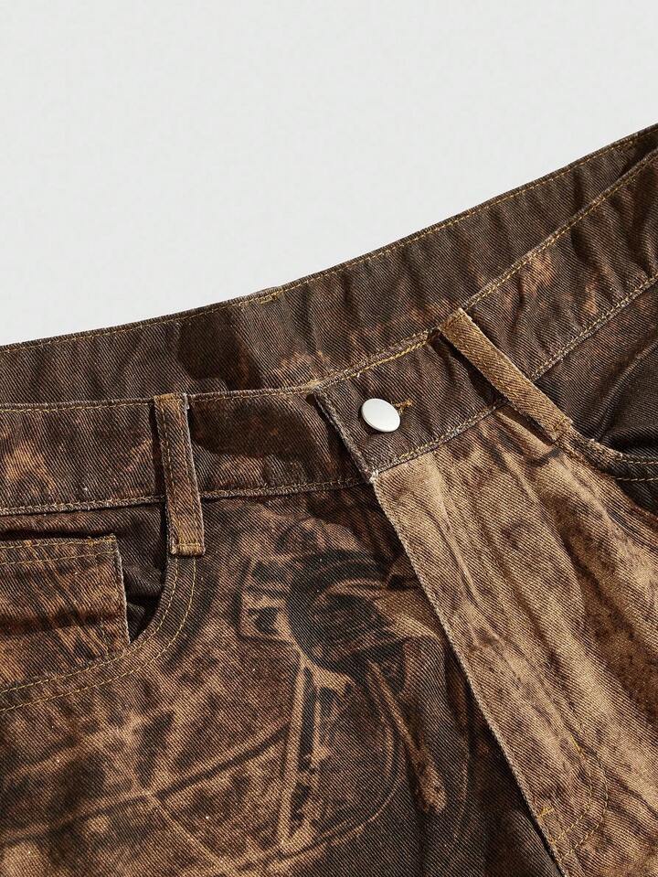 Grunge Punk Jeans en denim imprimé décontracté pour hommes