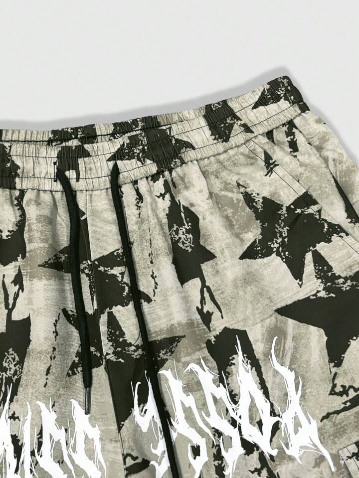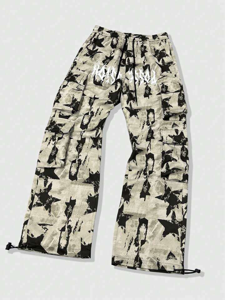 Pantalon cargo décontracté pour hommes avec taille à cordon de serrage et imprimé étoile