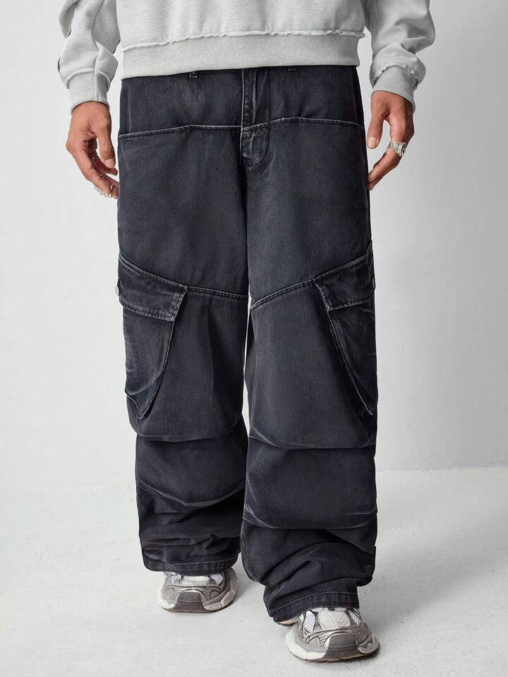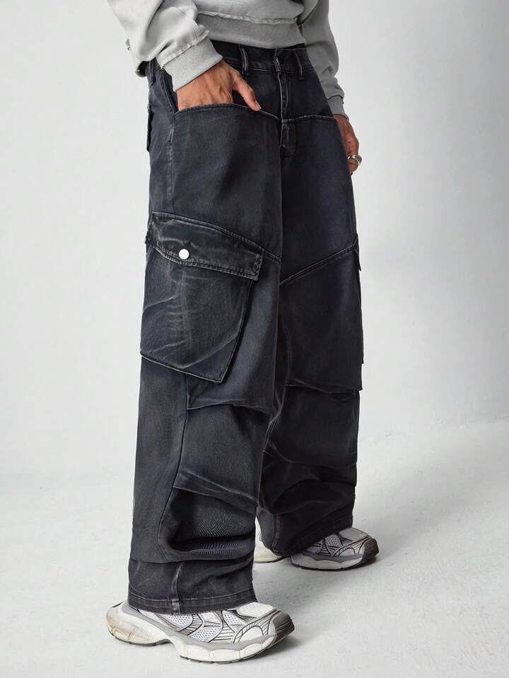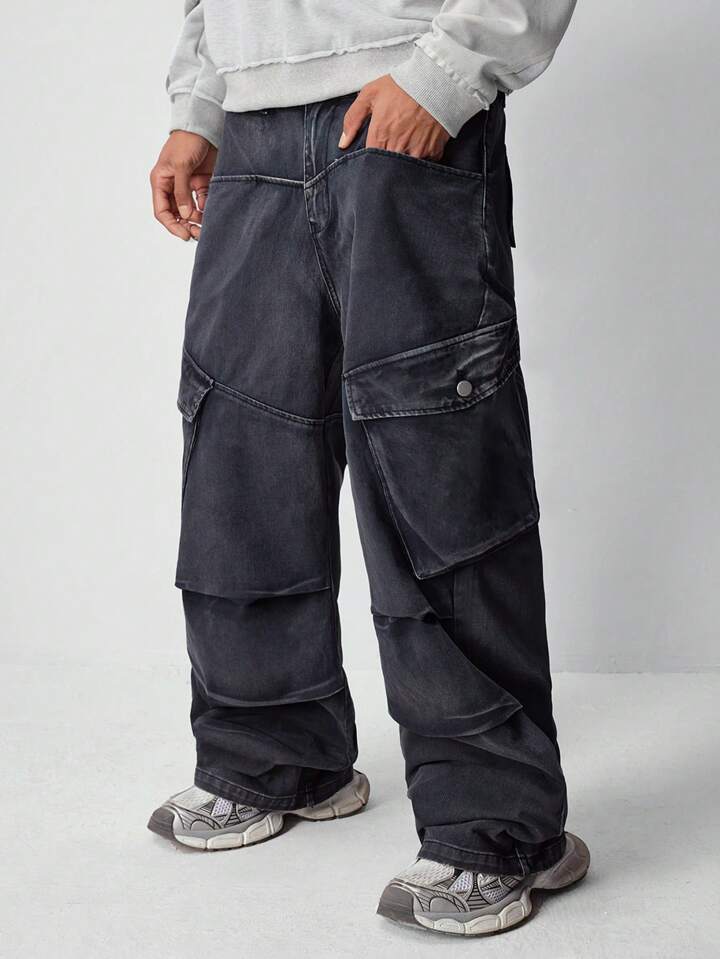 Grunge Punk Jeans cargo droits à jambes larges et décontractés pour hommes