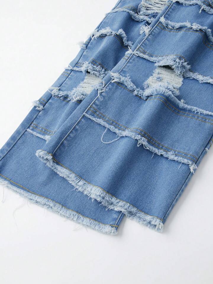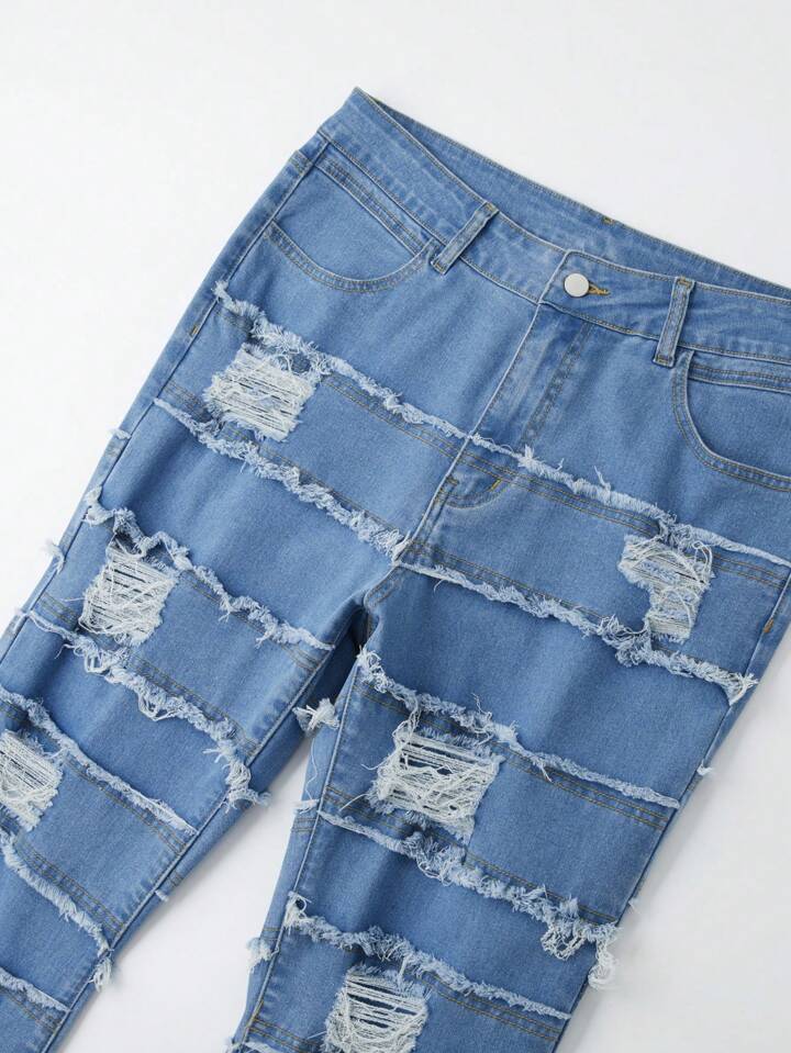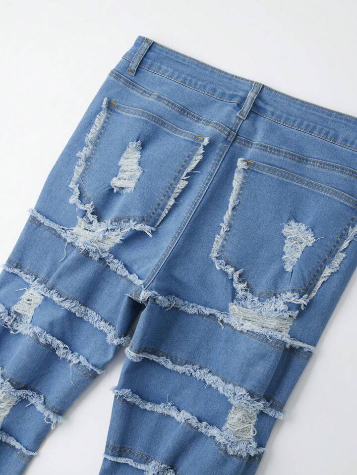 Grunge Punk Jeans en denim délavé, déchiré et effiloché pour homme, style casual