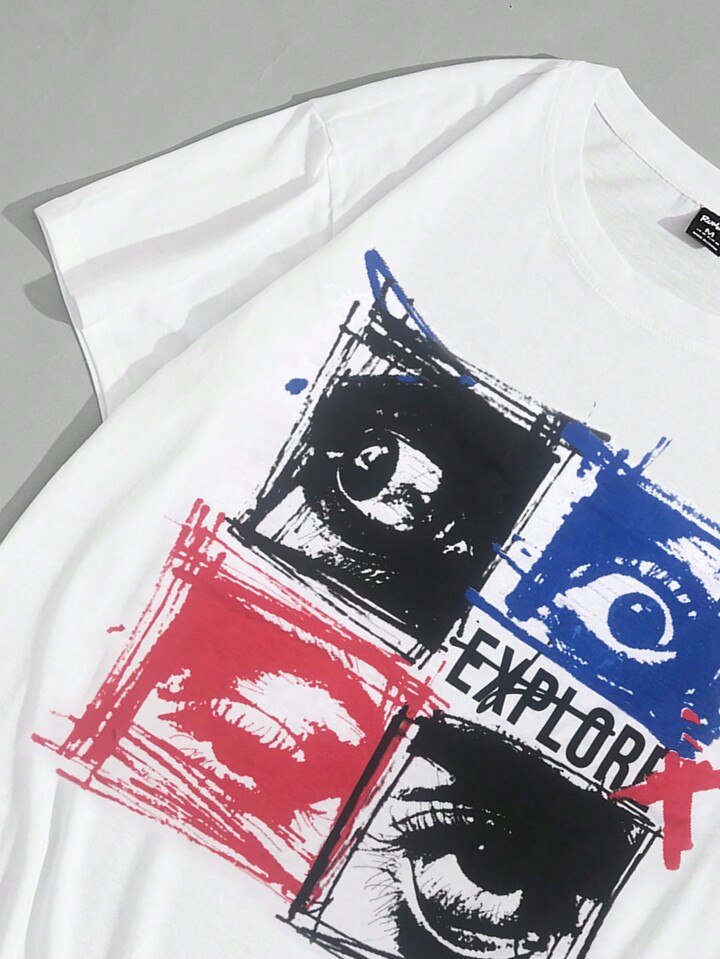 Grunge Punk T-shirt d'été à manches courtes imprimé œil et lettre pour hommes