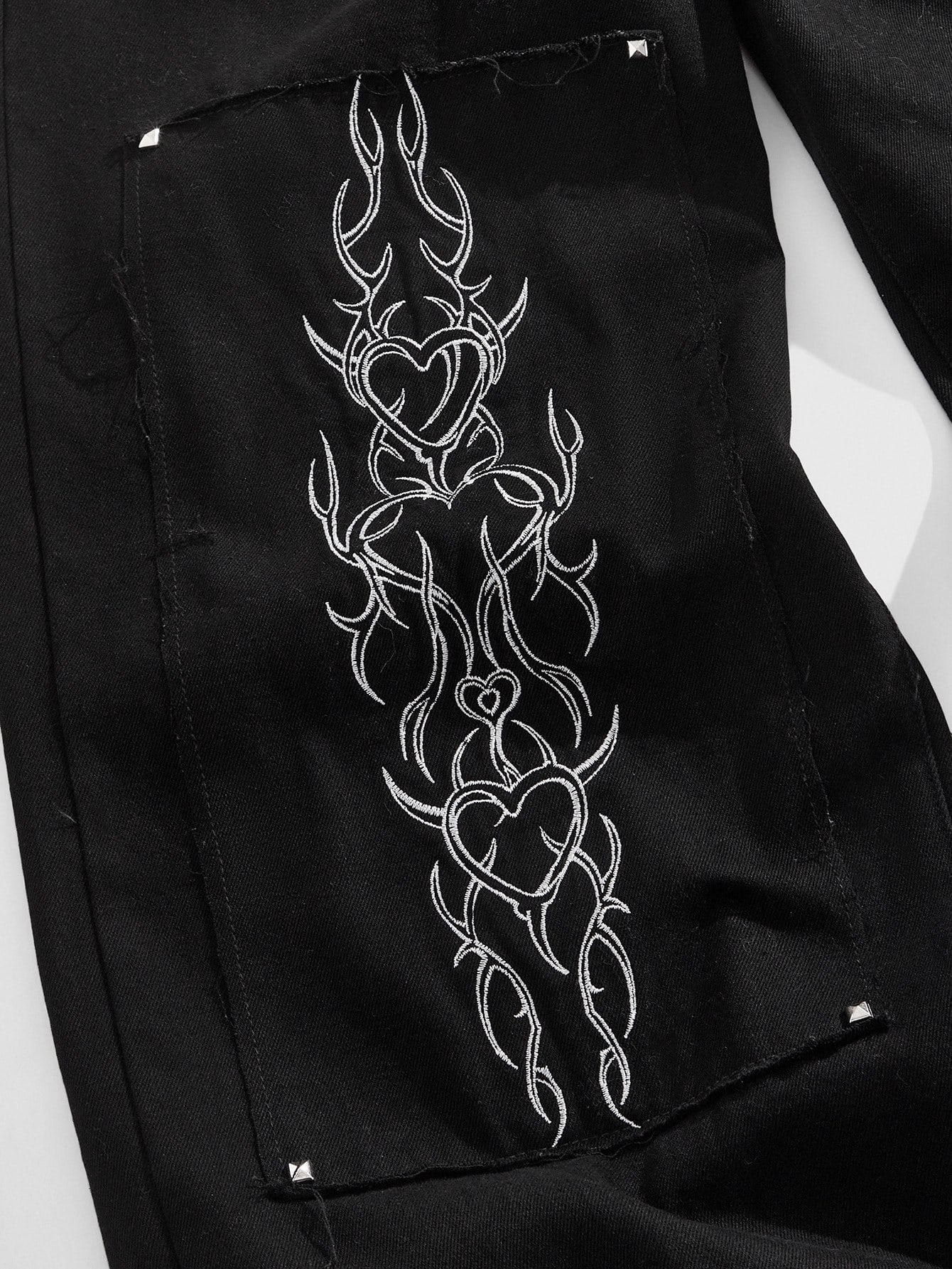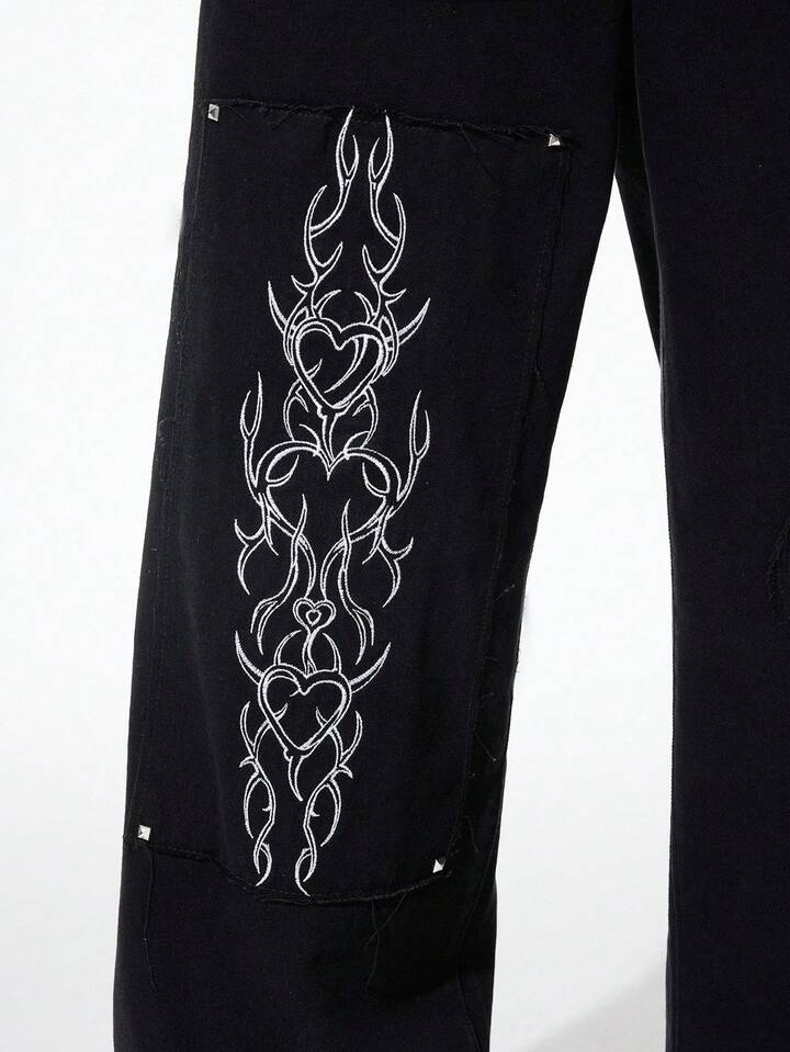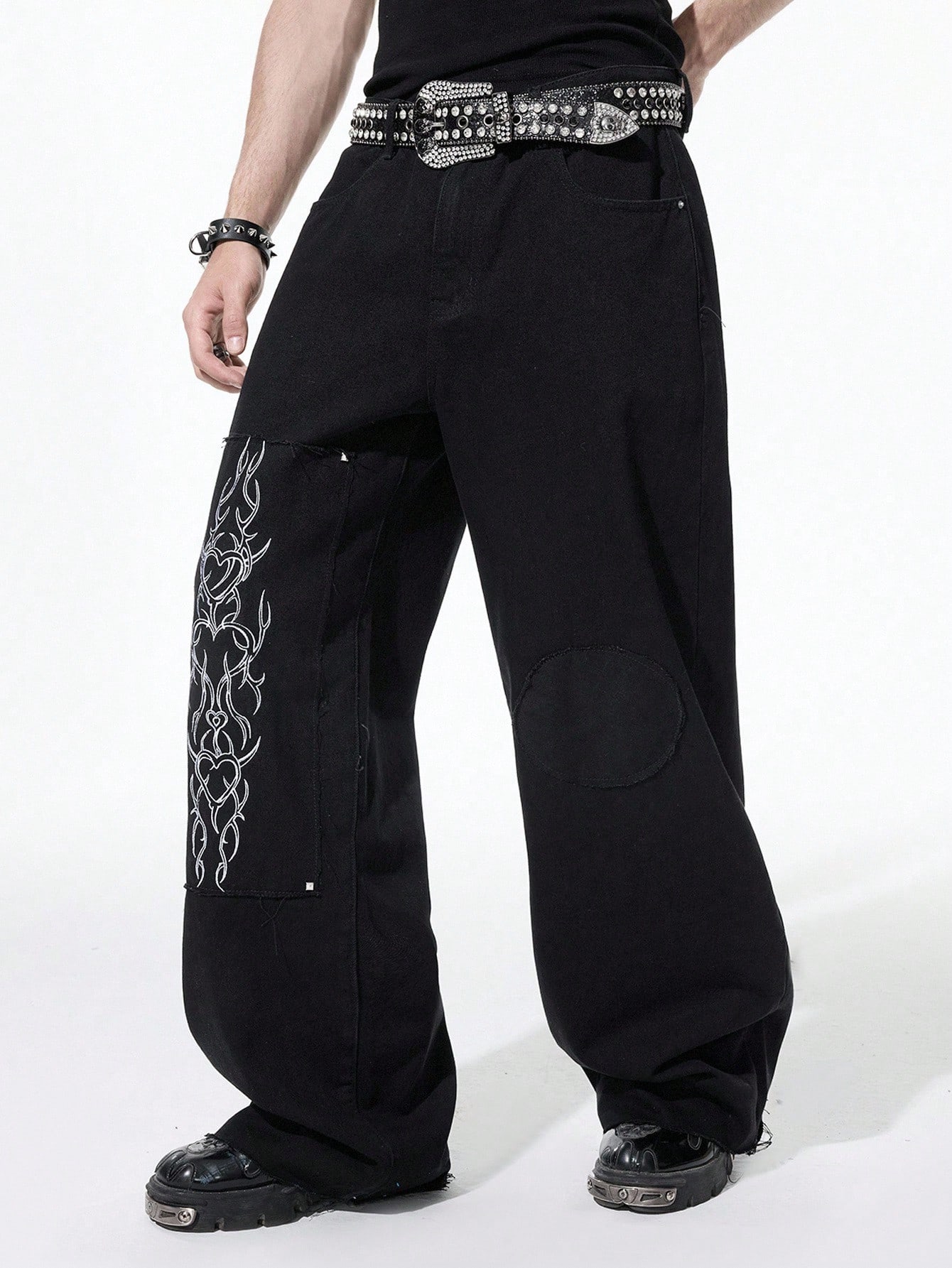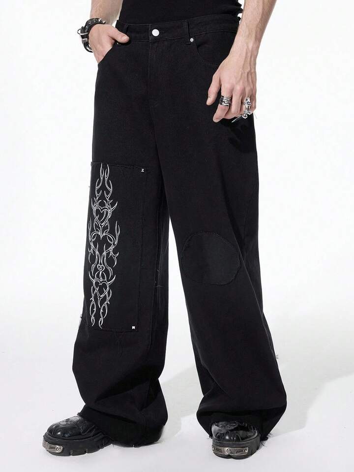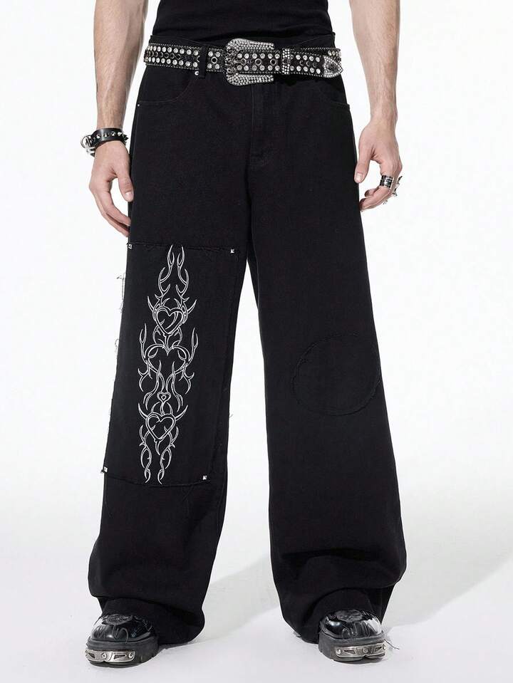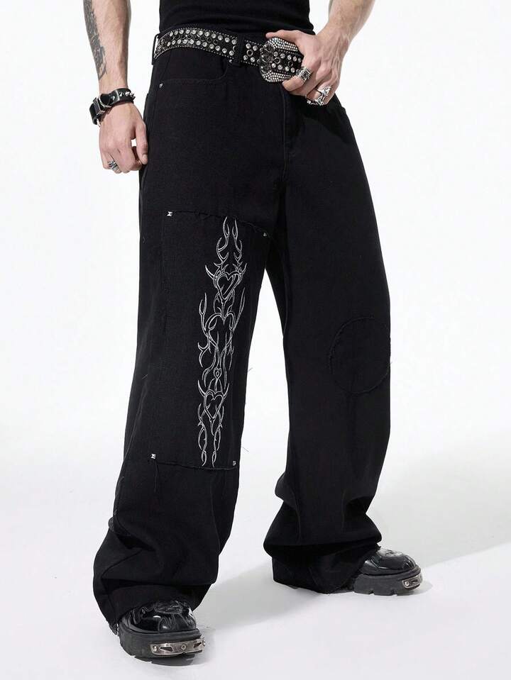Grunge Punk Jeans ample à broderie sombre pour homme
