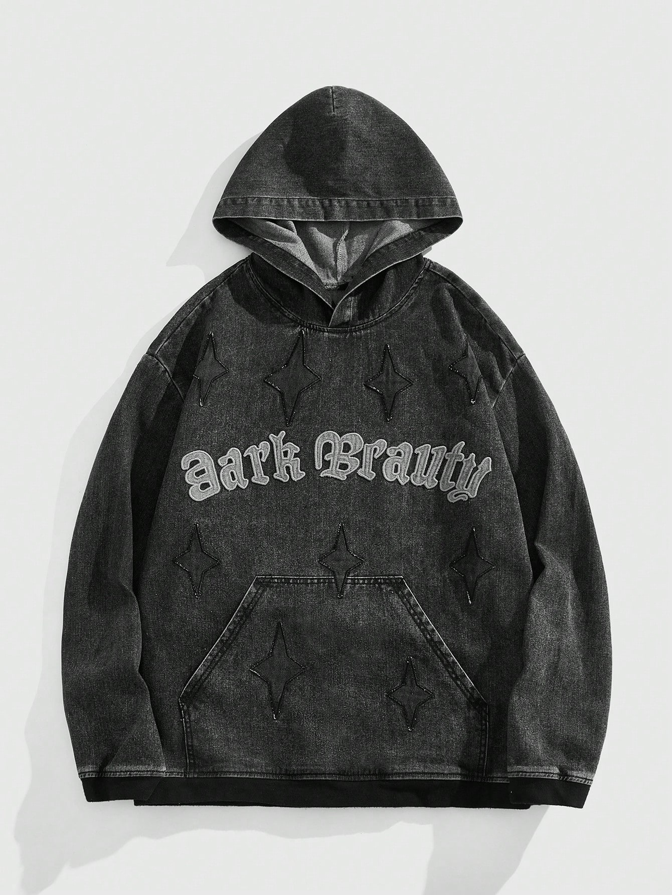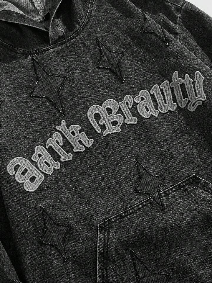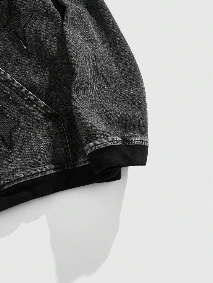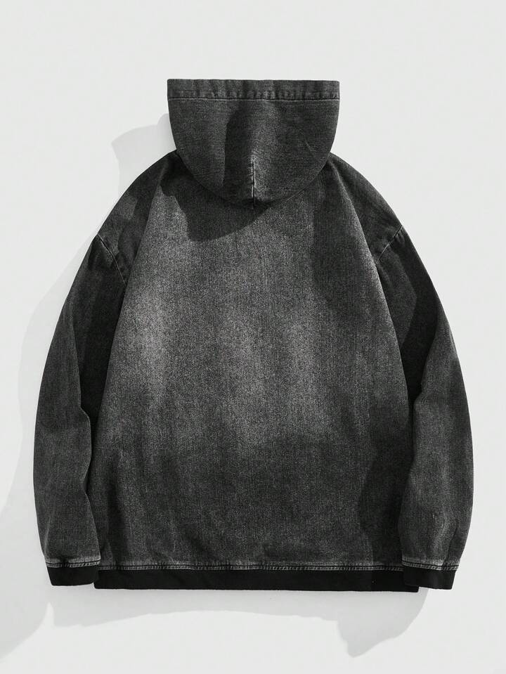 Grunge Punk Veste en jean à capuche décontracté avec poche lettre, manches longues pour homme