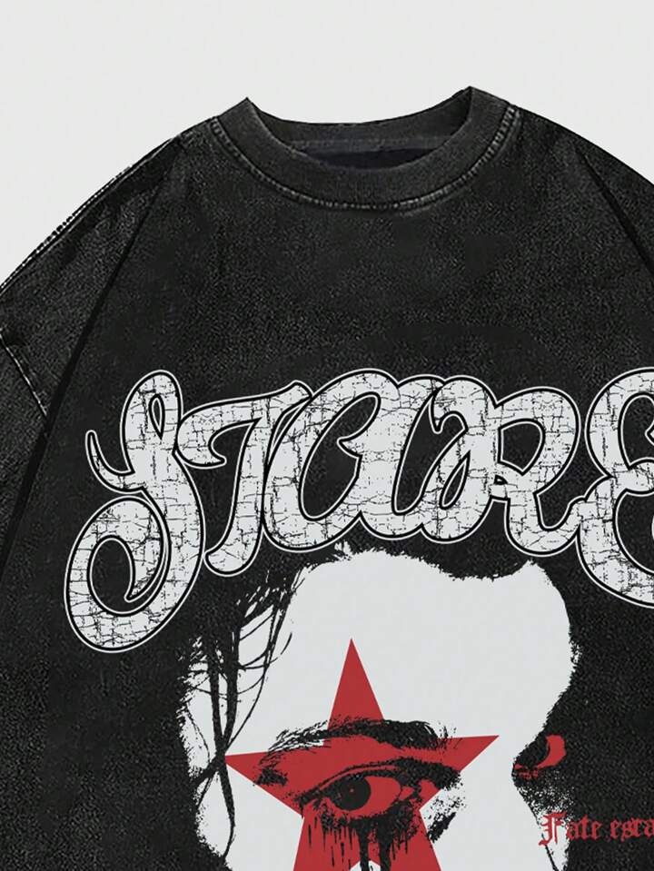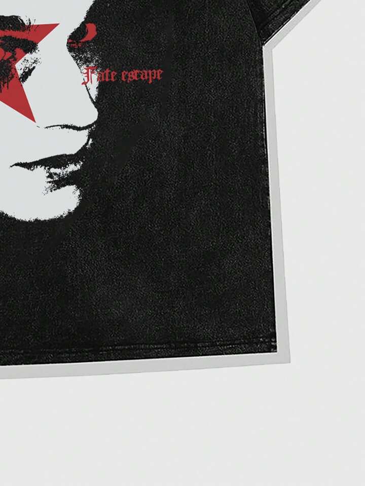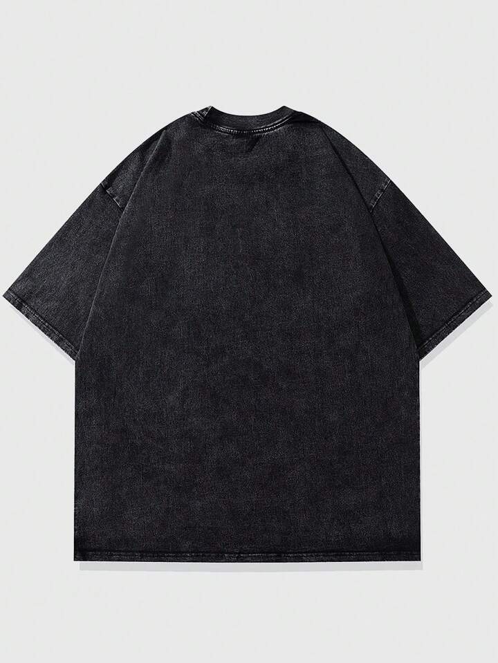 Grunge Punk T-shirt vintage pour homme à imprimé de silhouette lavé, style High Street