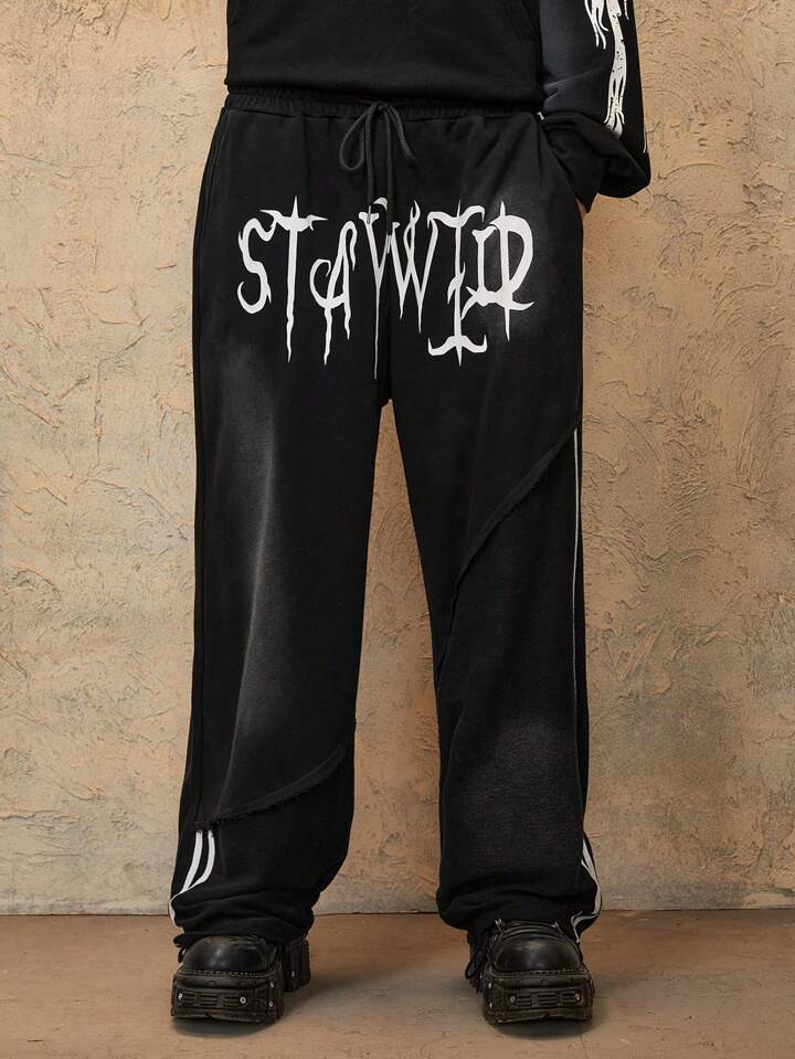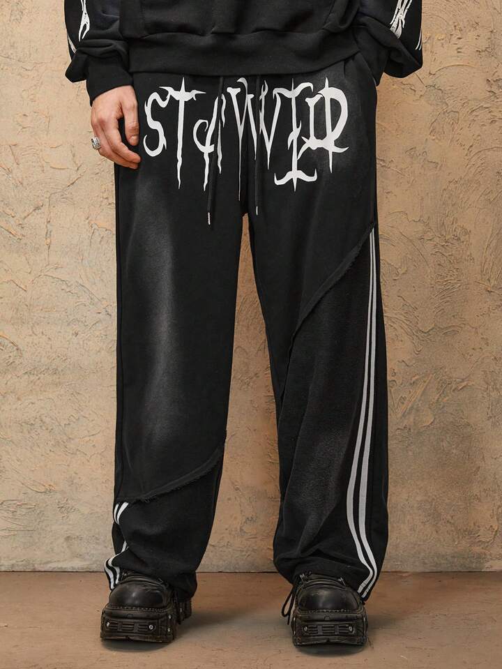 Grunge Punk Pantalon de jogging ample à taille à cordon de serrage avec imprimé lettrage, pour homme