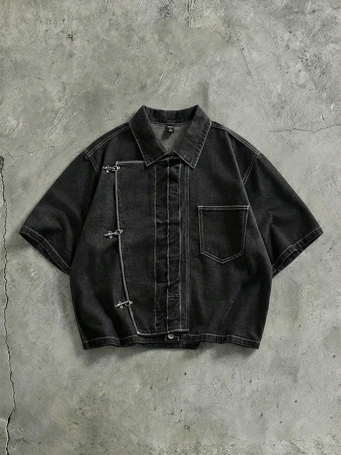 Grunge Punk Veste en jean pour hommes avec fermeture oblique et boucle avion