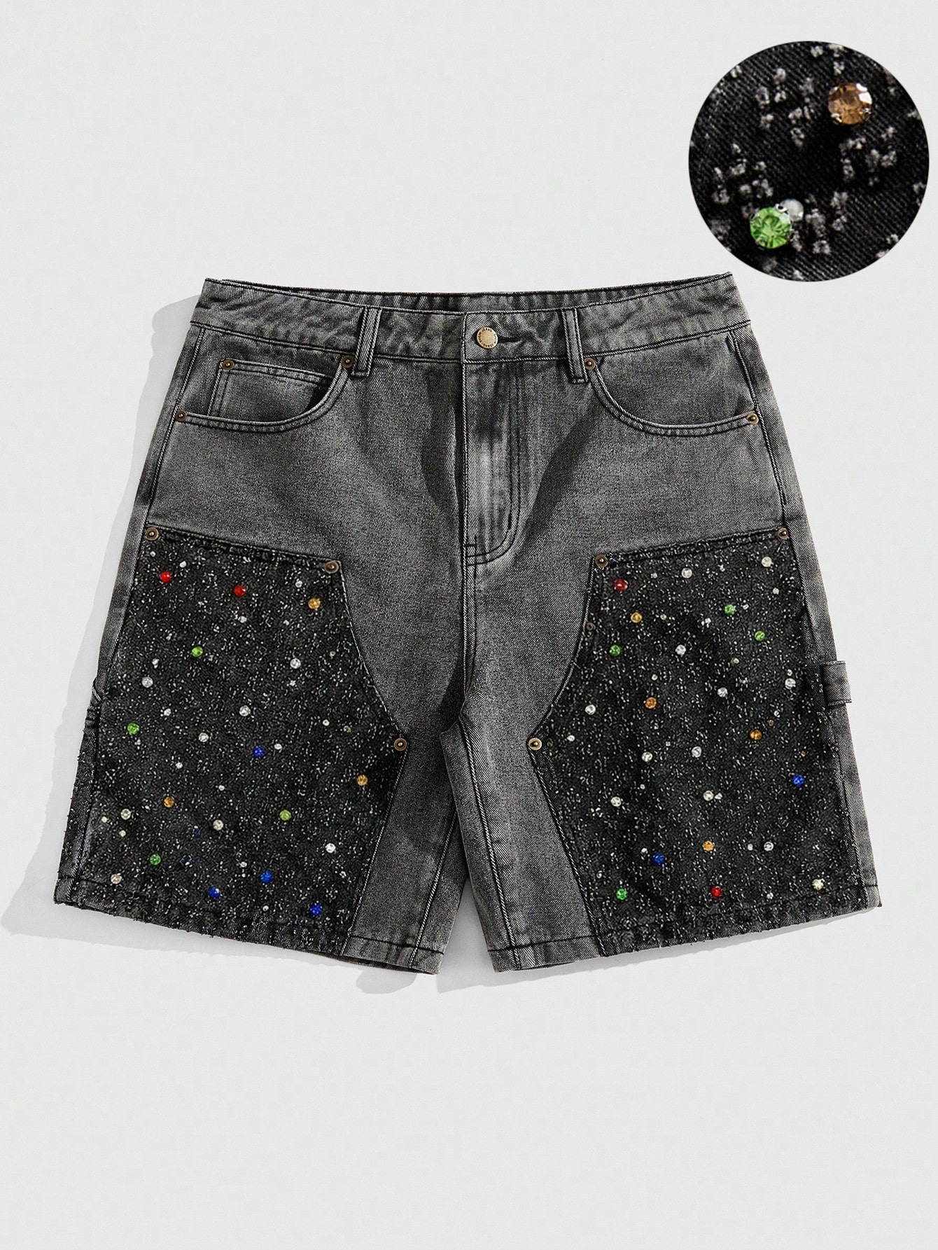 Grunge Punk Short en jean orné de strass pour hommes
