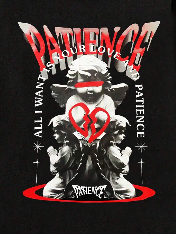 Grunge Punk T-shirt Ras Du Cou À Imprimé Ange Et Slogan Pour Hommes