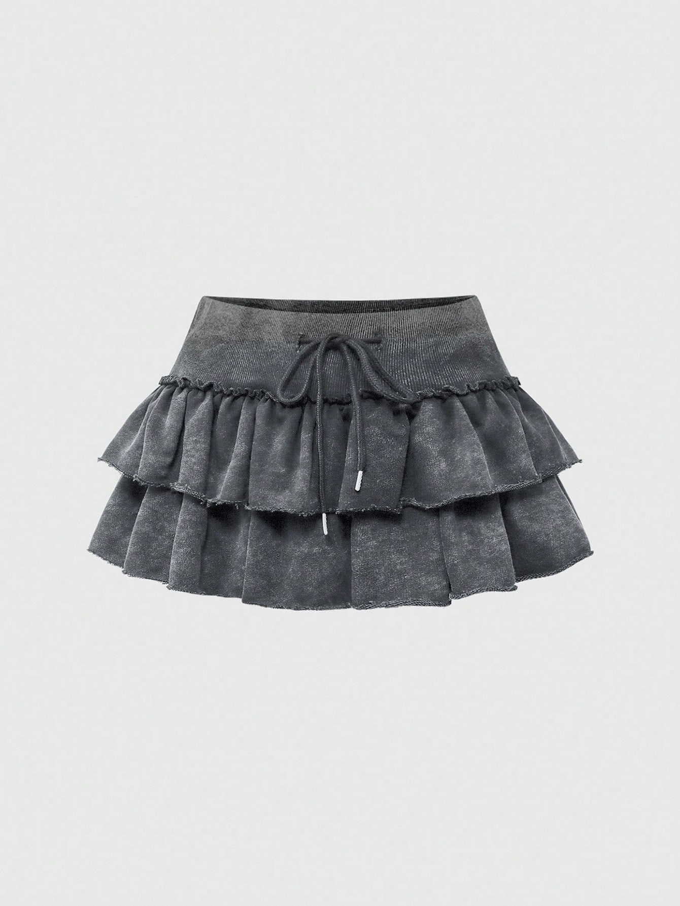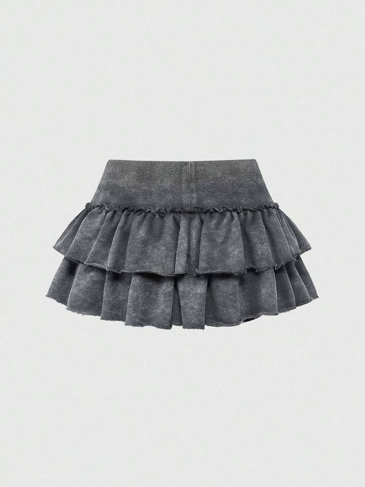 Grunge Punk Mini-jupe à taille basse et ourlet gâteau en tissu de sweat-shirt lavé pour femmes, style festival de musique