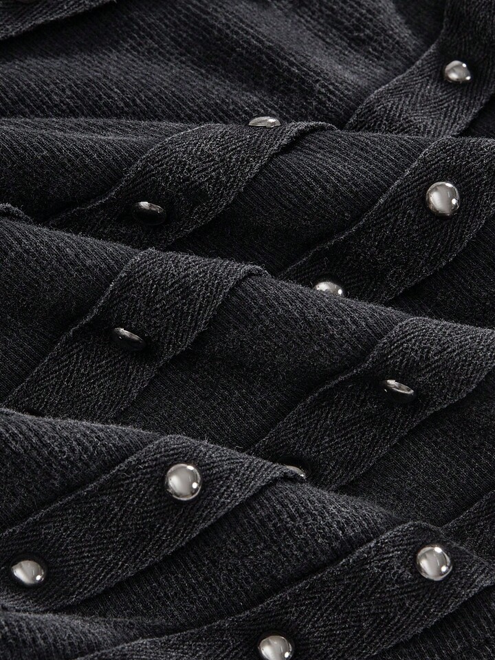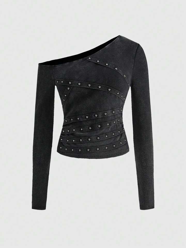 Grunge Punk T-shirt femme Kpop style festival de musique, avec rivets, strass et effet délavé