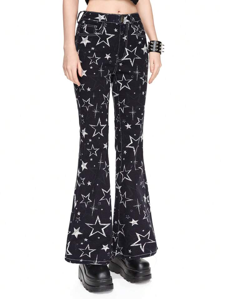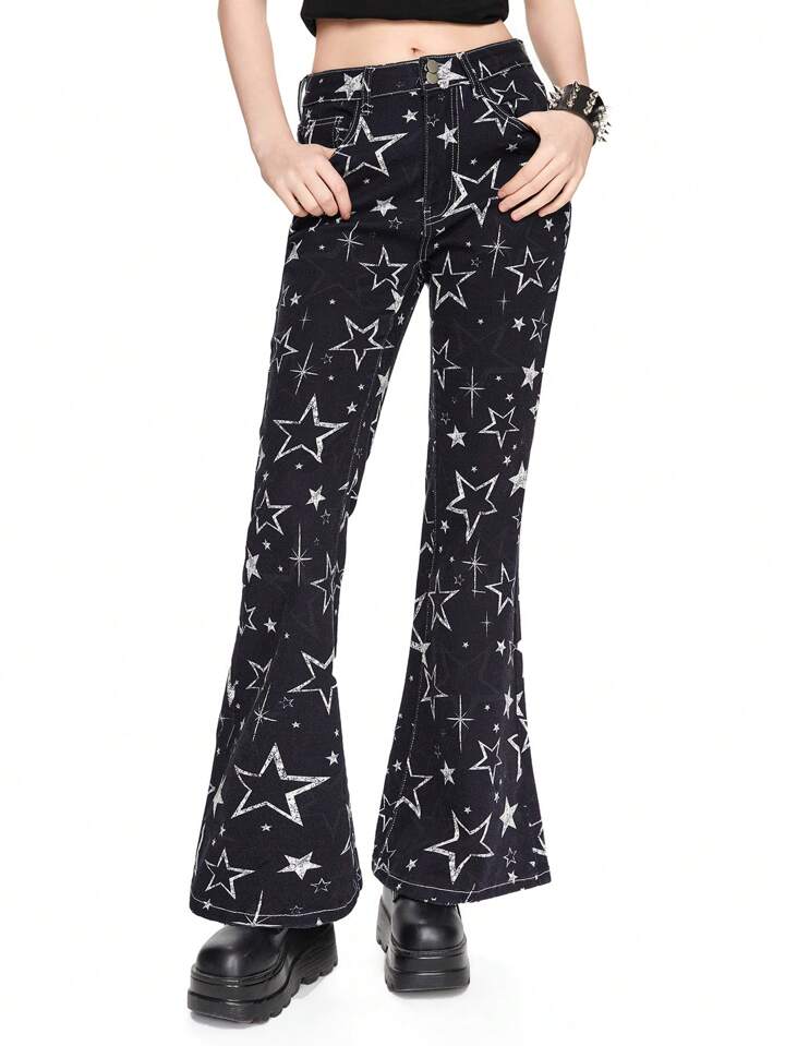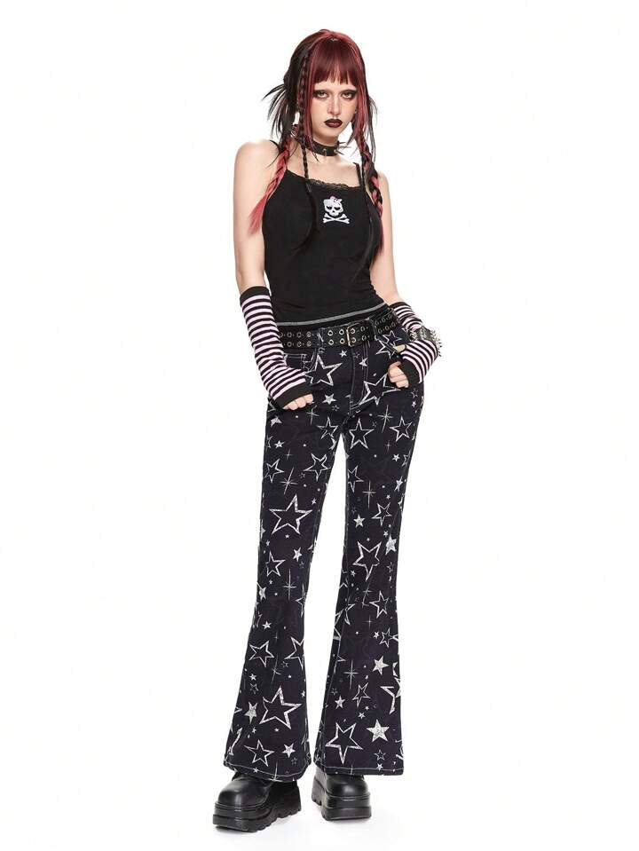 Grunge Punk Jeans évasés pour femmes à la taille basse, imprimé d'étoile, rétro et sexy, style punk