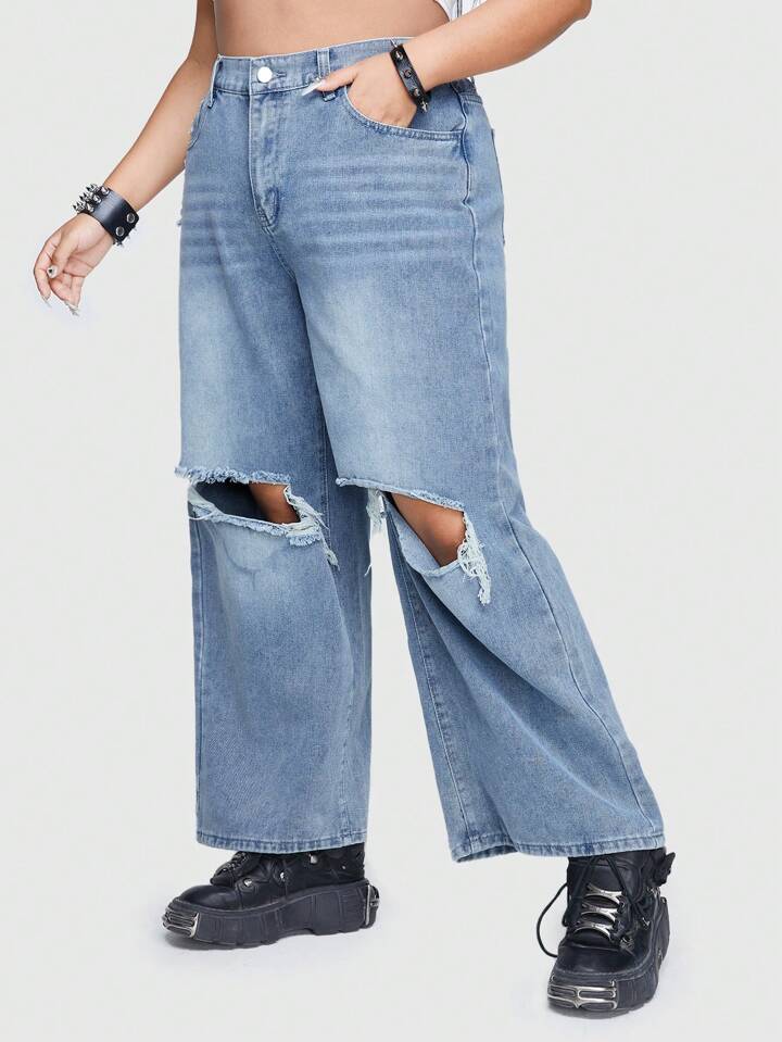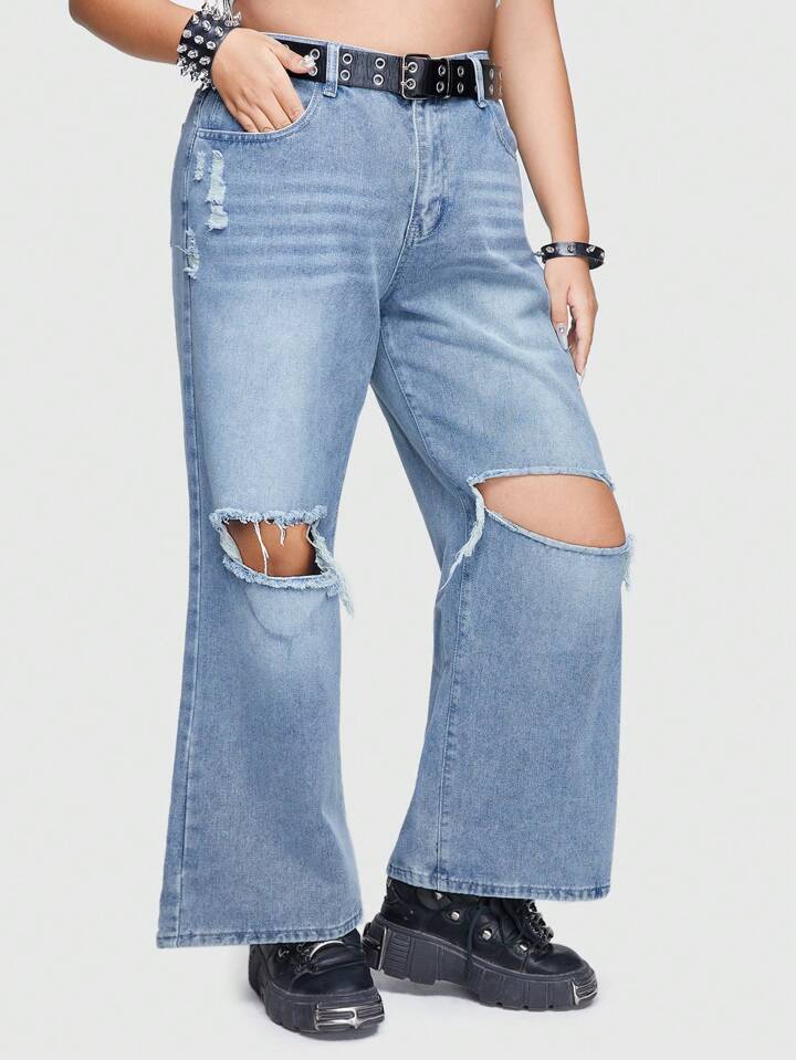 Grunge Punk Plus Jean Ample Déchiré (Sans Ceinture)