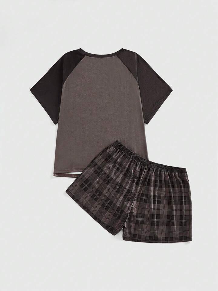 Grunge Punk Ensemble Pyjama avec T-shirt court à manches raglan à motif étoile sombre punk et shorts à carreaux, grande taille
