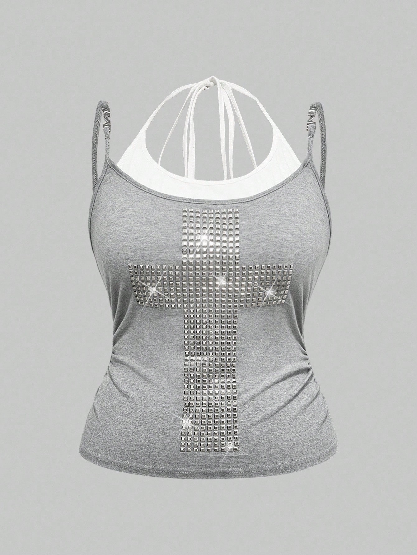 Grunge Punk Débardeur à bretelles spaghetti 2 en 1 avec pendentif punk Y2K sexy en métal, grande taille
